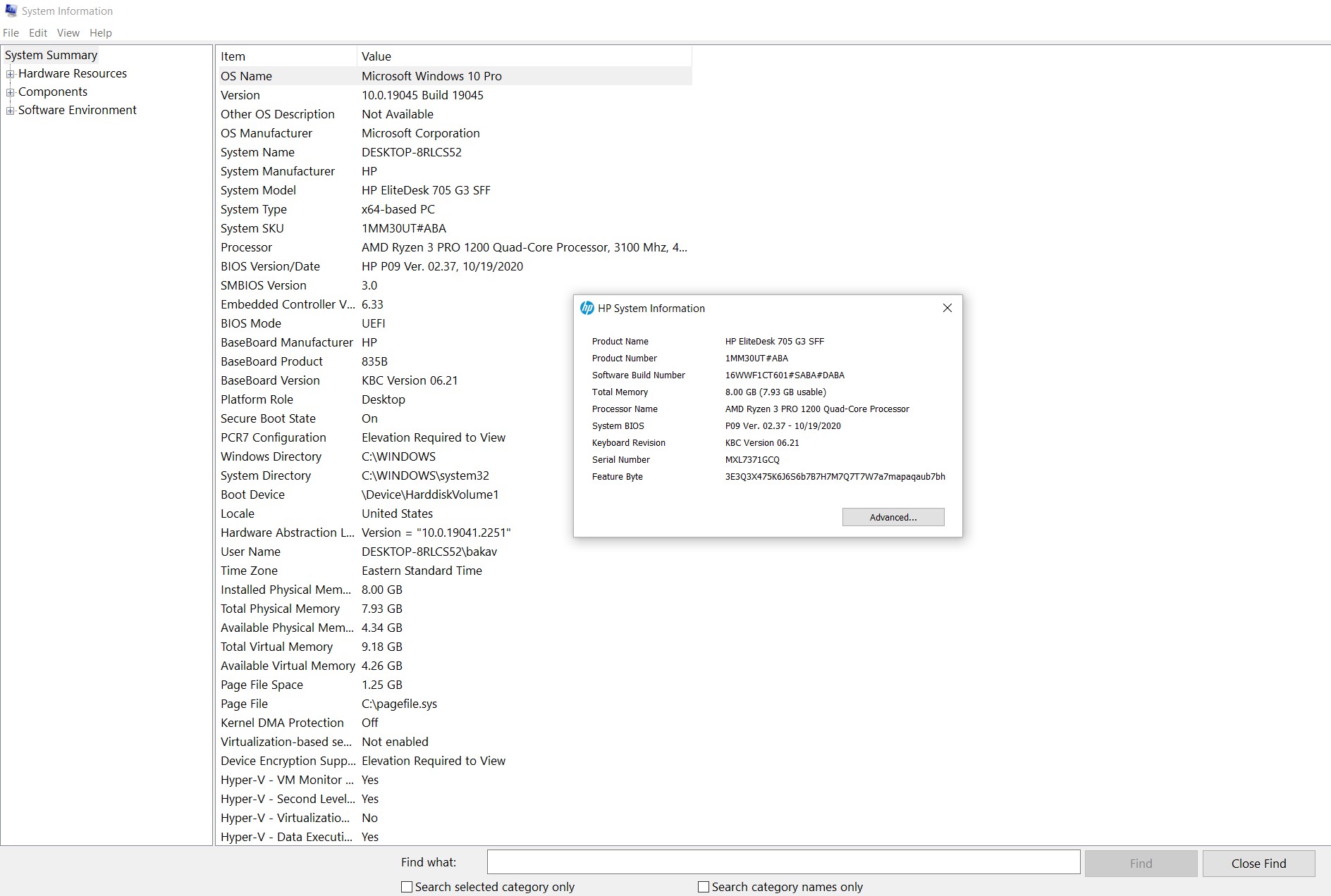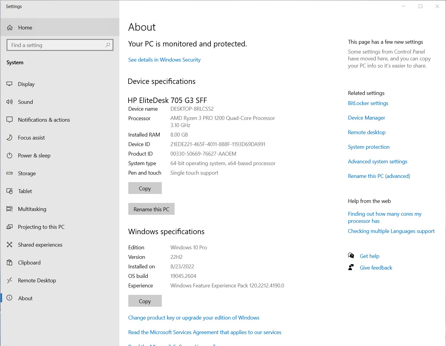 Up for sale is a used HP EliteDesk 705 G3 PC in good used condition. This PC was put into service in October of 2017 and was retired when replaced with a newer, faster computer in spring of 2022. We then repurposed it as a remote desktop client and have now retired it a second time and are offering it on the internet in hopes that someone out there can put it to use. The SSD has been wiped and a there is a clean install of Windows 10 Pro 22H2 on it ready for the next owner to setup. The case is in pretty good shape with minor scratches/scrapes. Please keep these things in mind when considering your purchase. If you would like to save on the shipping cost, you’re welcome to schedule an appointment and stop by to pick it up.