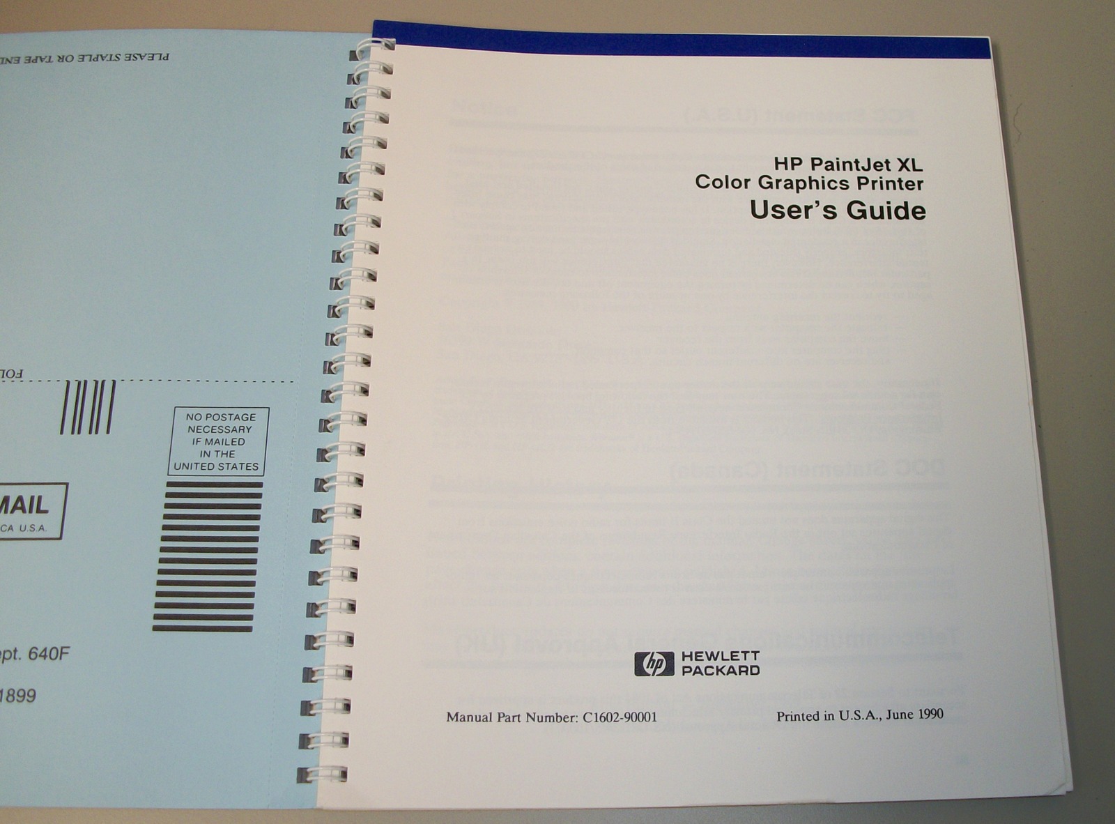 Up for sale is the original user’s Guide for an HP PaintJet XL Color Graphics Printer from 1990. This has some minor wear / scuffs / marks – see pictures!, Part No. C1602-90001. Second Edition – June 1990. Examine the pictures!!