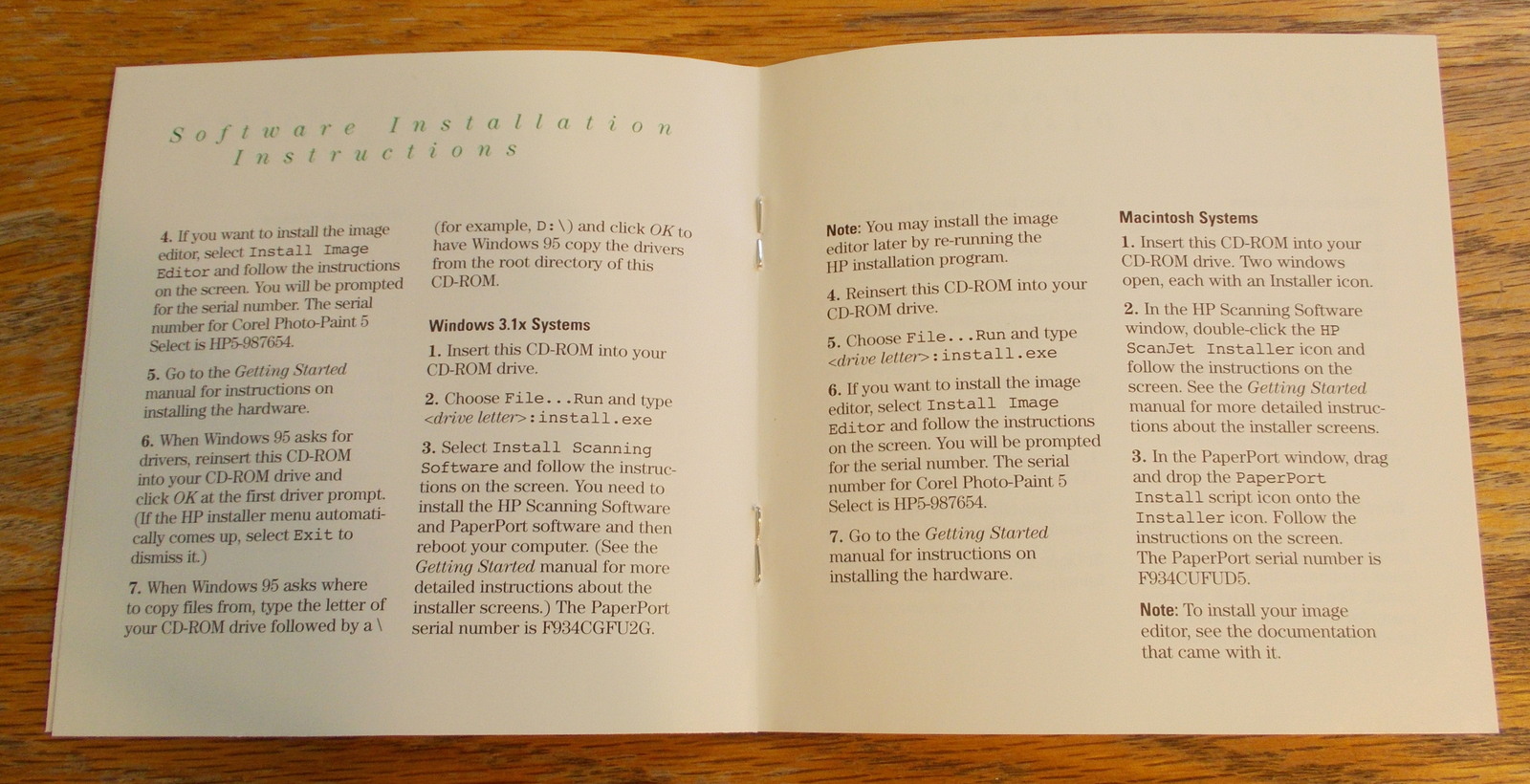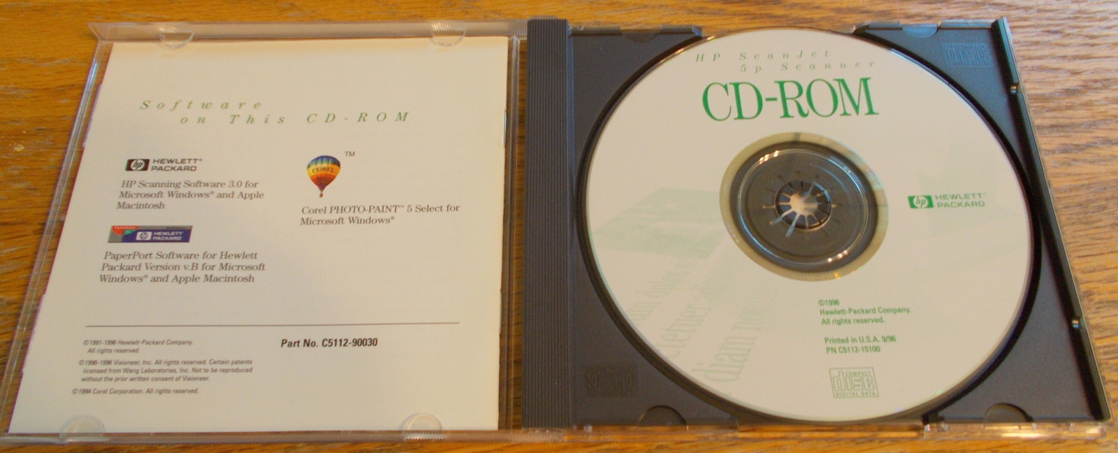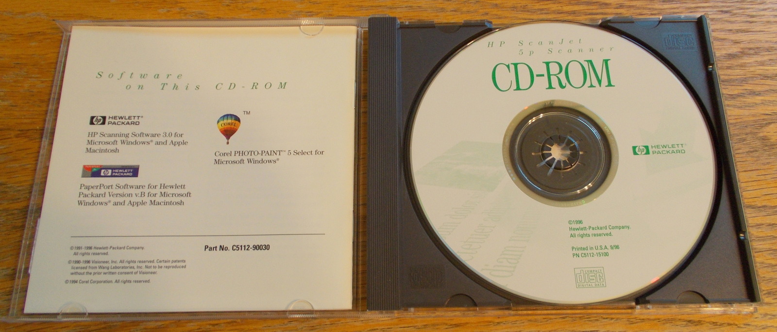 Up for sale is the original install CD which came with an HP ScanJet 5P from 1996. You get the original CD, jewel case, and instruction booklet.