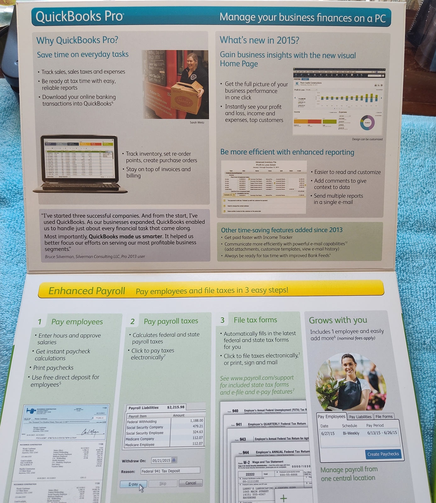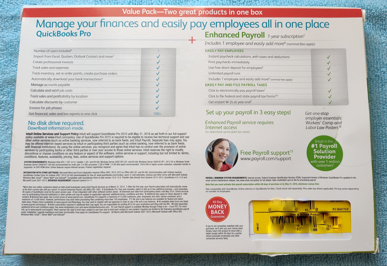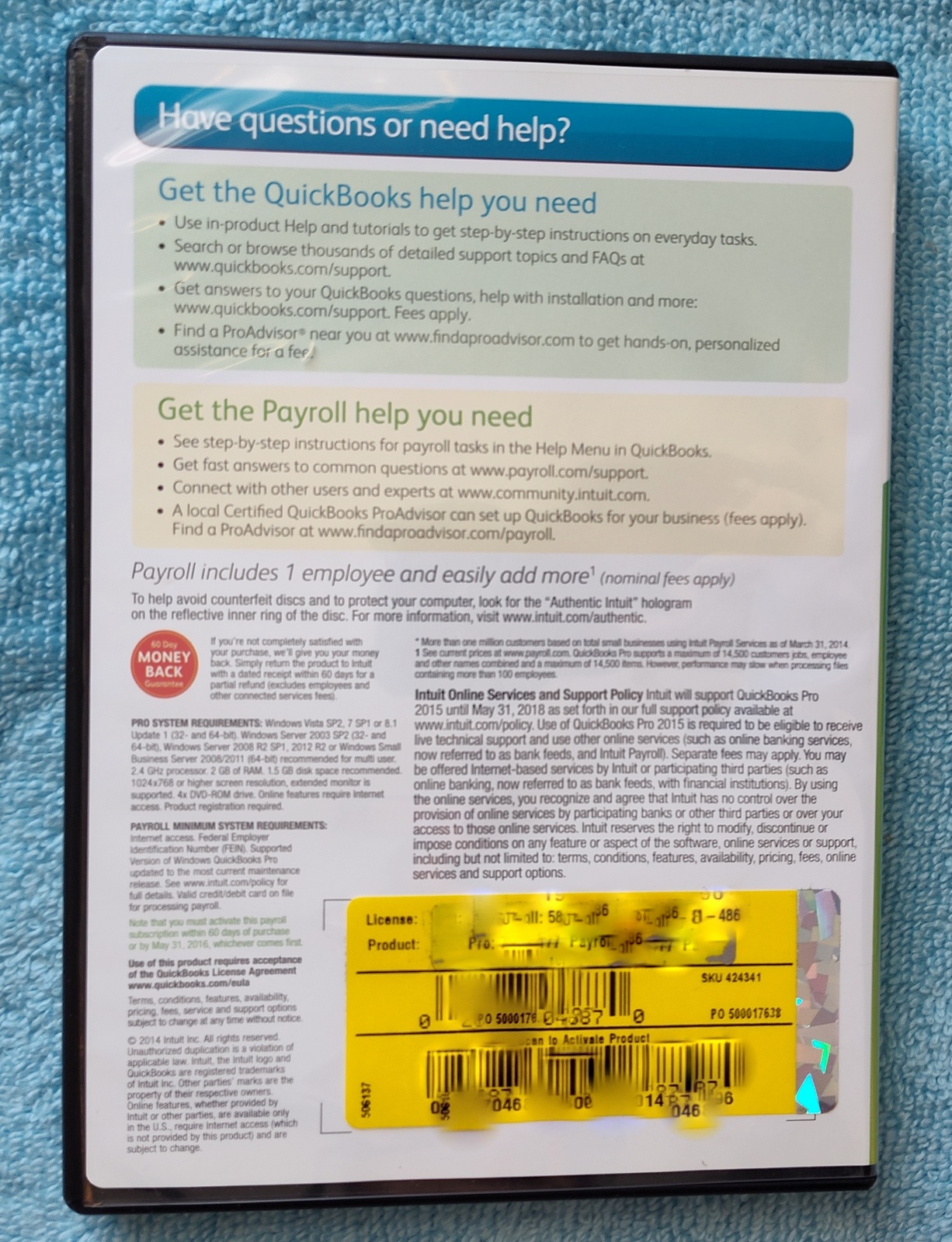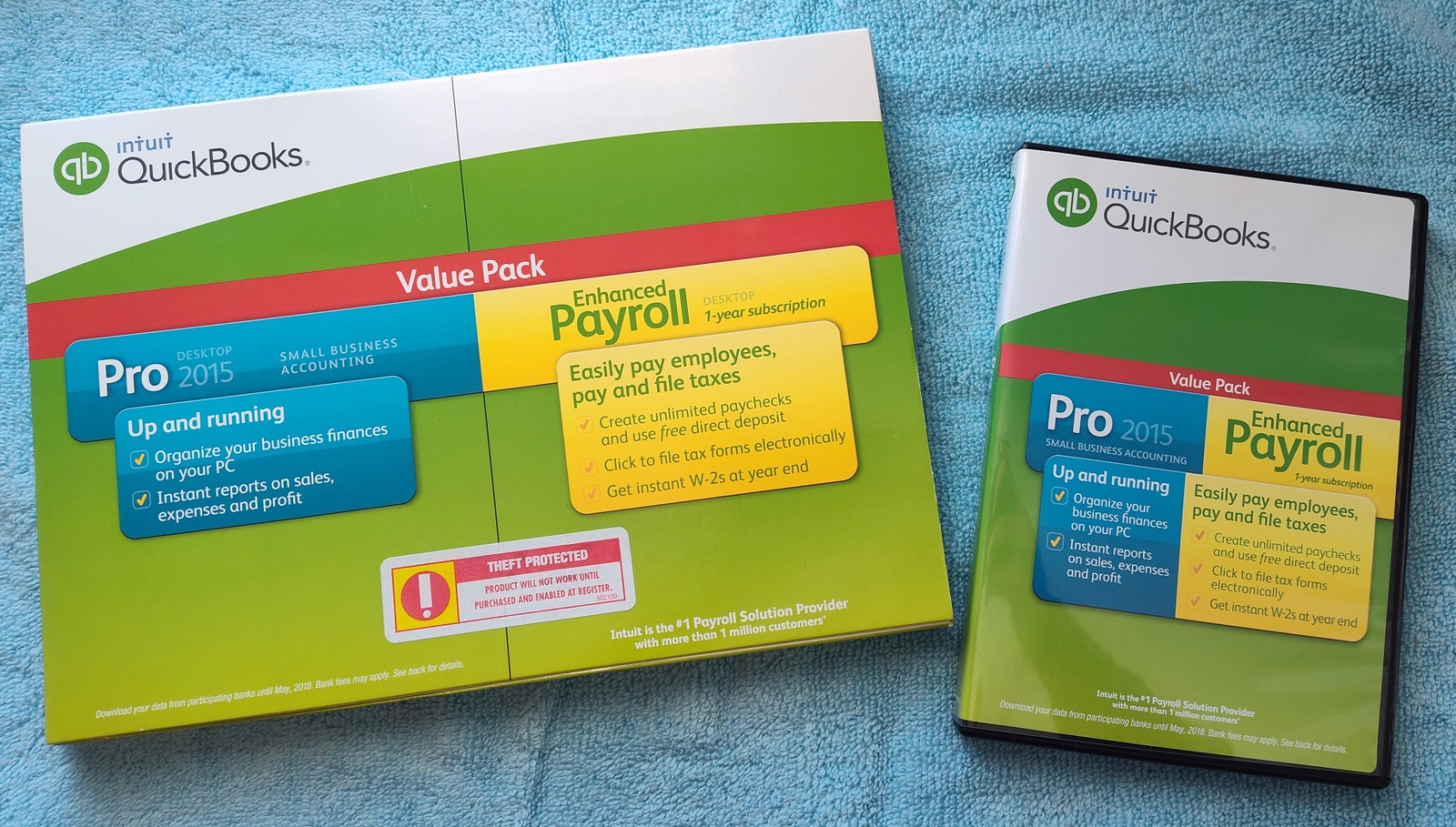 Up for sale is a used copy of Intuit Quickbooks Pro 2015 Desktop Accounting software. UPC: 0028287046870. This was purchased and installed back in April 2015 – it was uninstalled a little less than a year later when we purchase the next version of Quickbooks. Back then, it was less expensive to purchase the new version of Quickbooks which came bundled with a year of payroll service than it was to just renew the payroll service – go figure! Nowadays, because of Intuit’s move to subscription only software, licenses of these older versions are commanding premium prices – but no subscription required!