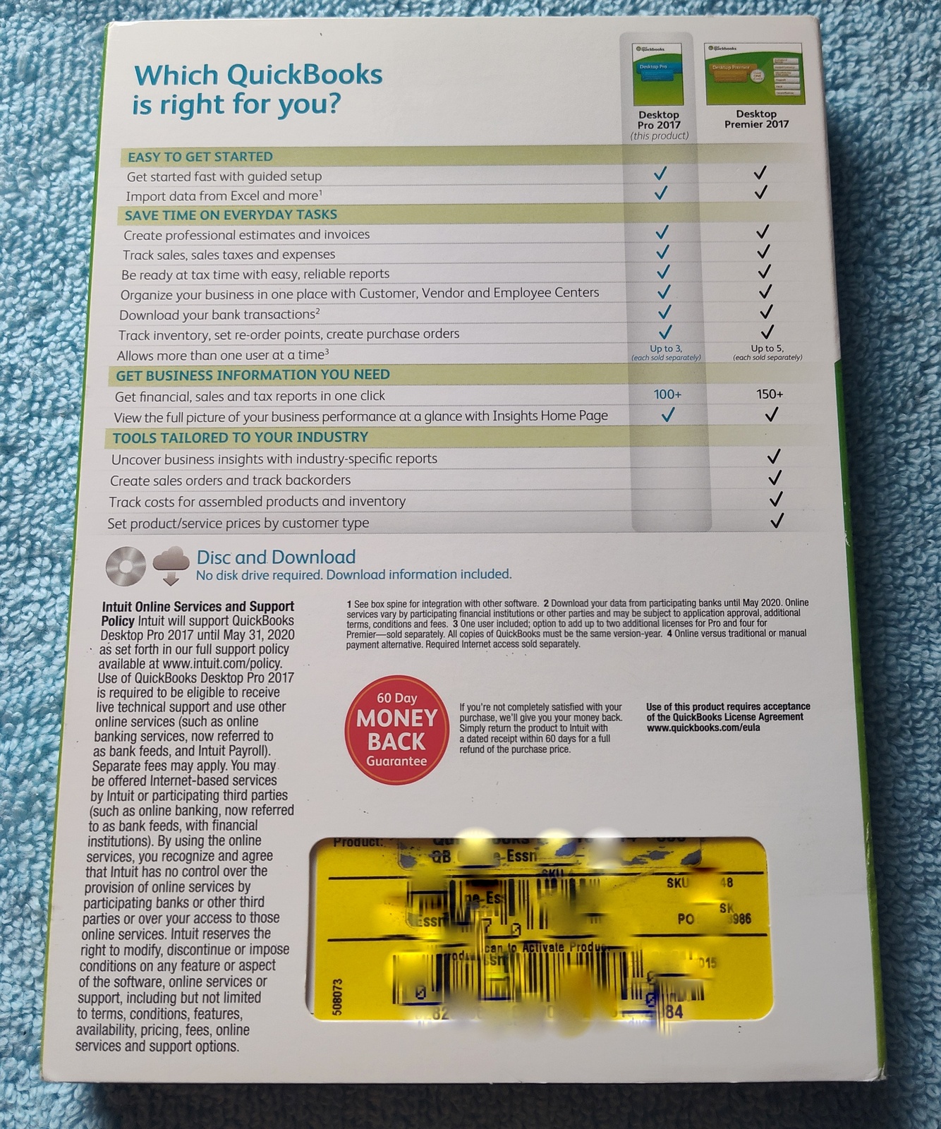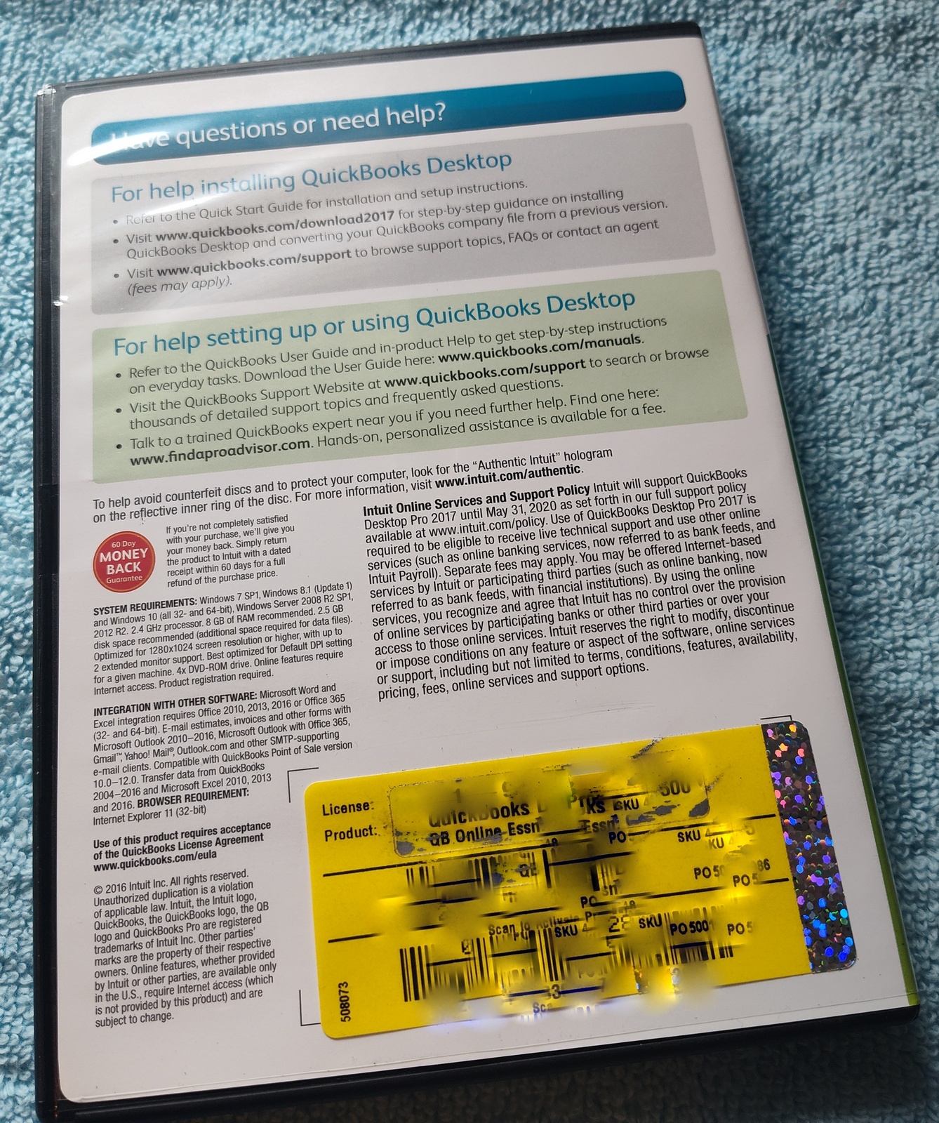 Up for sale is a used copy of Intuit Quickbooks Pro 2017 Desktop Accounting software. UPC: 028287061040. This was purchased back and installed in spring 2017 – it was uninstalled when the system was upgraded to the 2020 version of Quickbooks and this one has been on the shelf since. Nowadays, because of Intuit’s move to subscription only software, licenses of these older versions are commanding premium prices – but no subscription required!