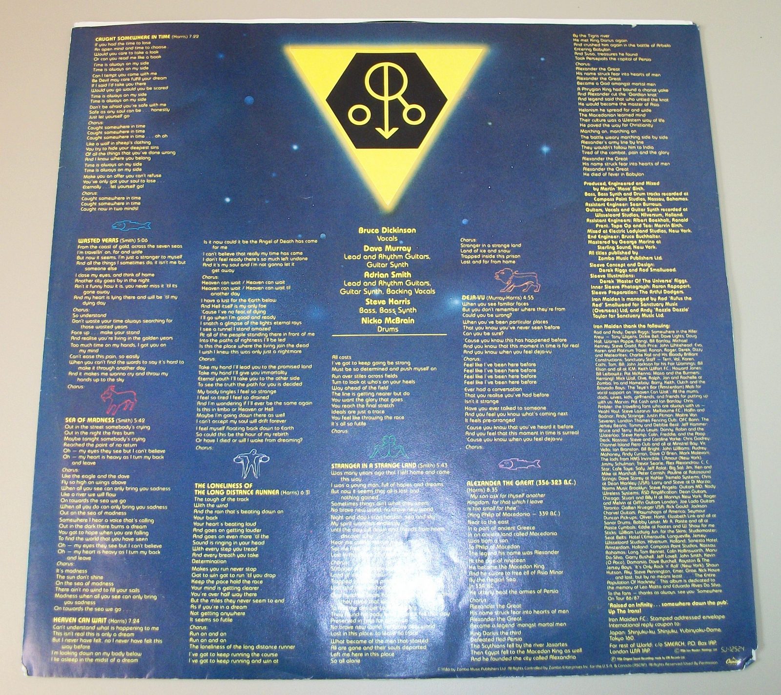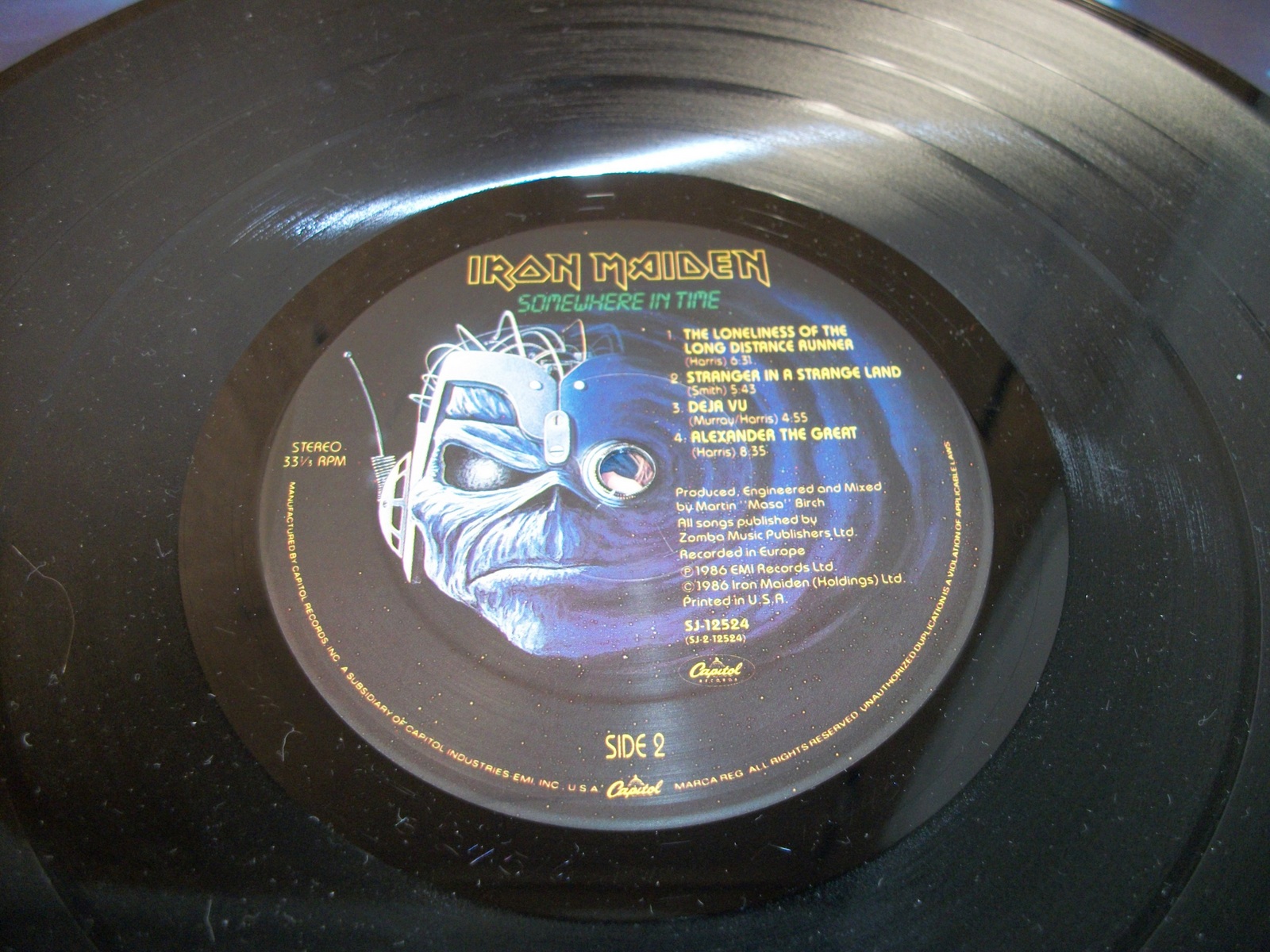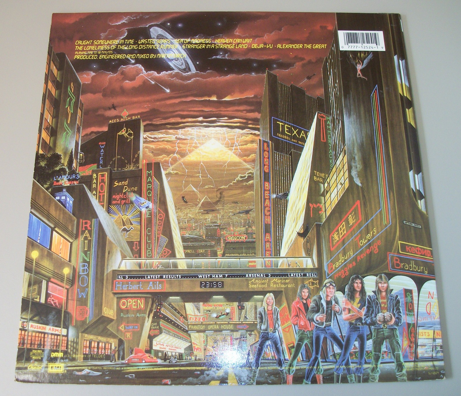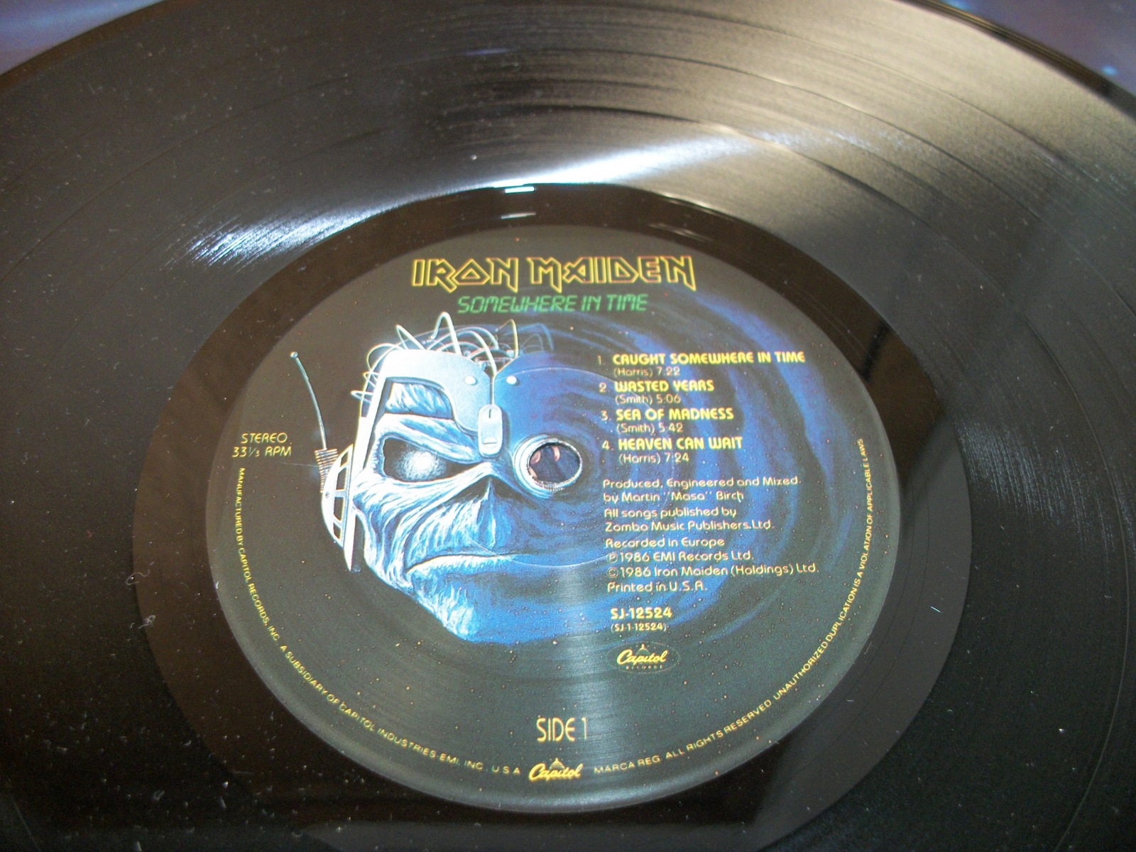 Up for sale is Iron Maiden’s Somewhere In Time album on 12″ vinyl. LOOK AT THE PICTURES! Excellent used condition with minor wear, record breaking through the sides of the insert.