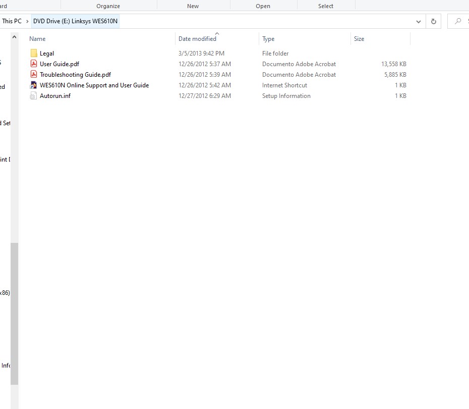 The disc has documentation for Linksys WES610N – User’s Guide, Troubleshooting Guide, and web links (we suspect the web links no longer work since this is about 10 years old!)