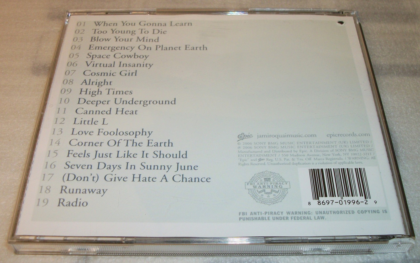 Up for sale is High Times Singles 1992-2006 by Jamiroquai on CD from 2006 – rock / pop music. Published by Epic Records. This CD is in excellent condition – look at the pictures! UPC: 0886970199629