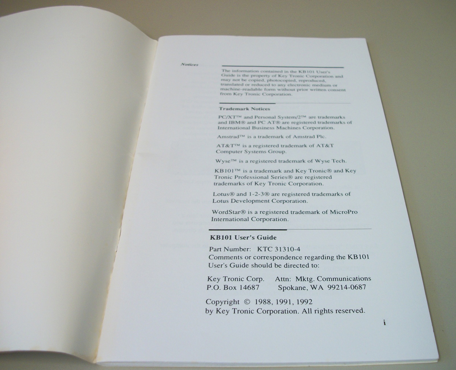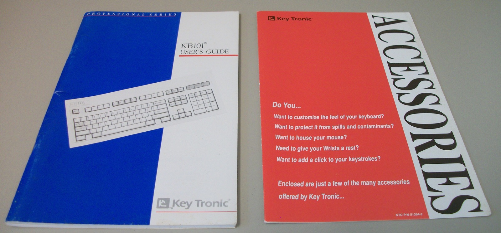 Up for sale is the original user’s guide for a KeyTronic KB101 keyboard from 1992. This is in good used condition and includes the KeyTronic accessories catalog / order form. Part Number: KTC 31310-4. Examine the pictures!!