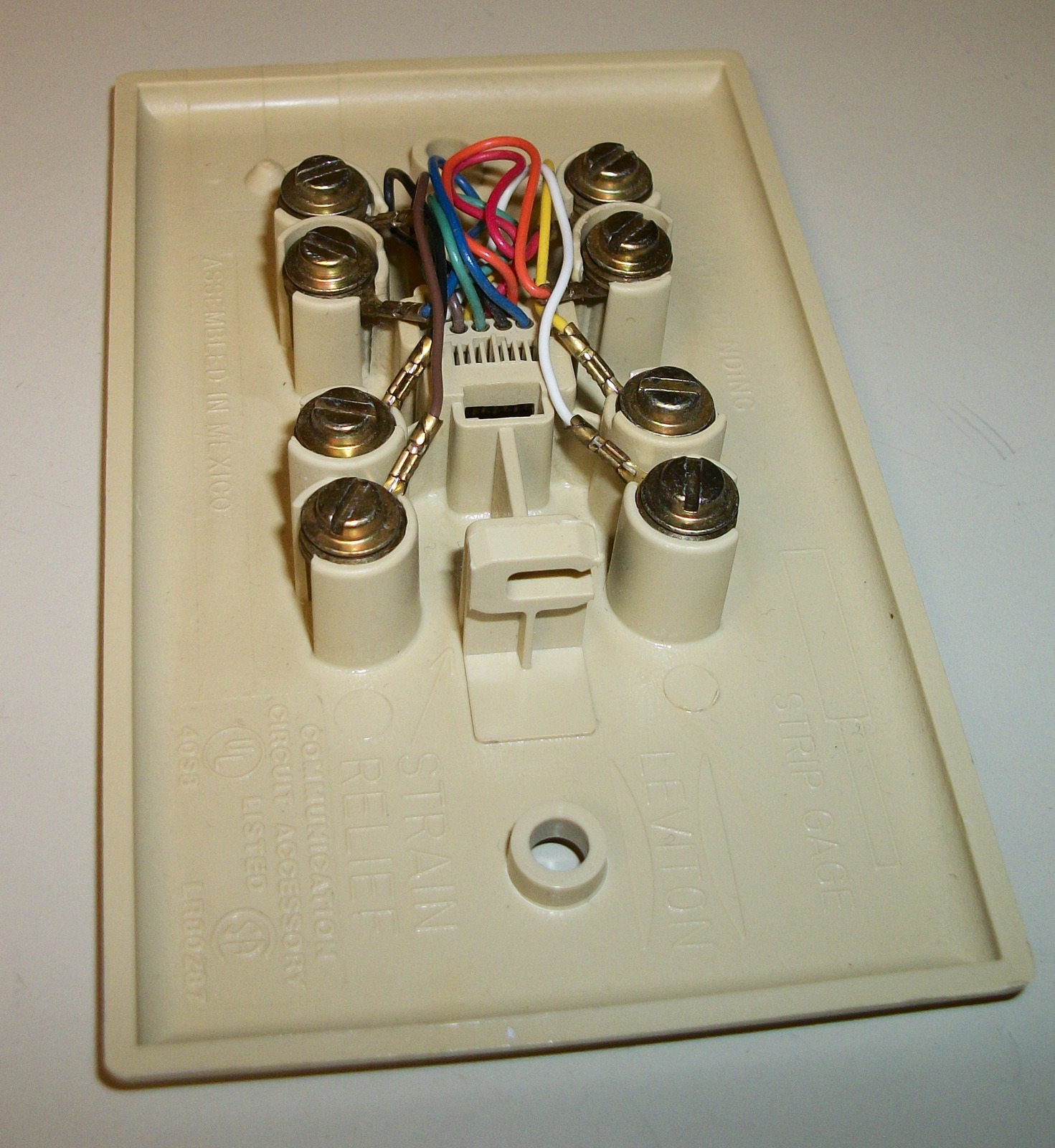 Up for sale is a used Leviton 8-Conductor screw terminal faceplate/jack in good condition.