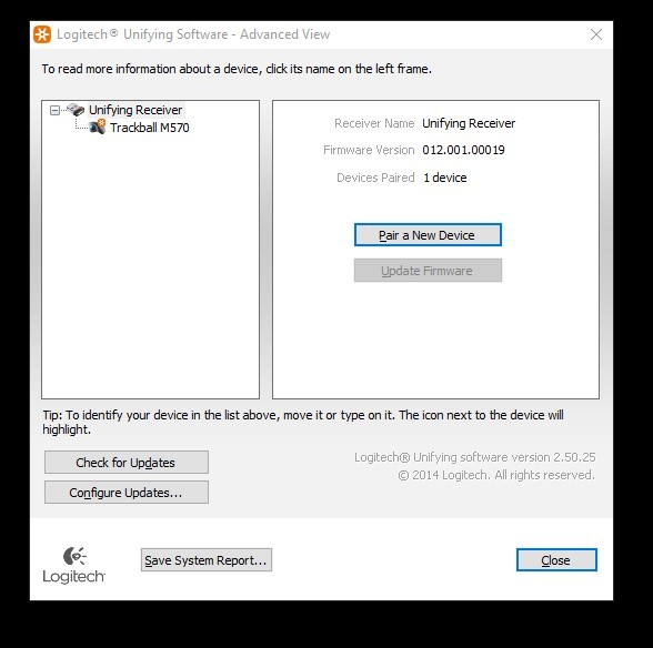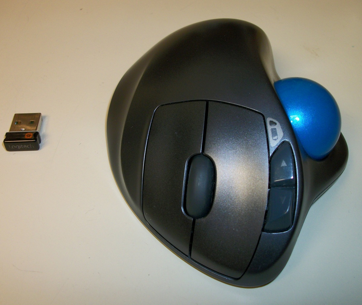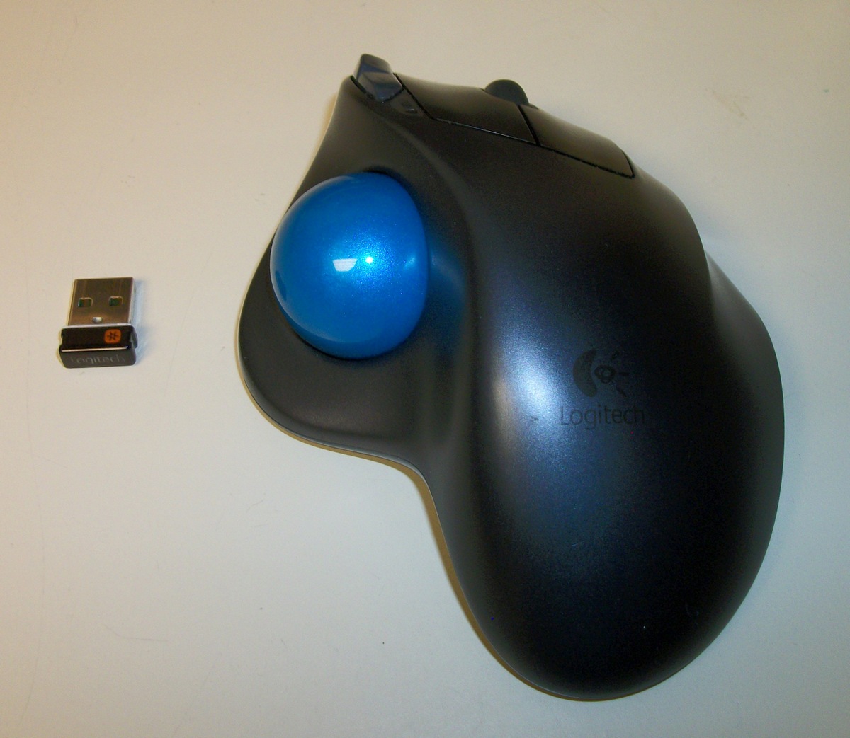 Up for sale is a Logitech M570 USB wireless trackball with Unifying Receiver for Parts or Repair only. The left click button sometimes double-clicks and sometimes doesn’t register a click. The trackball is already paired to the receiver which it comes with. This was under warranty from Logitech, so we setup a return under the warranty. They said sent us another trackball and said that we did not have to send this one back. Hope someone out there can put the parts to use! This uses one AA battery which you will need to provide – this does NOT come with a battery!