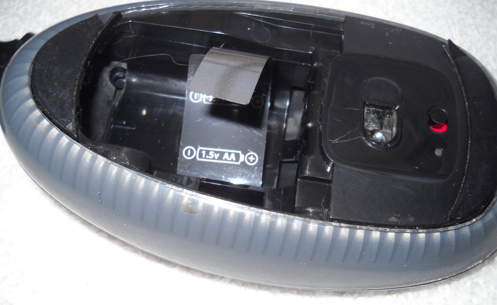 Folks either loved or hated these mice – they operate with touch gestures and while the entire mouse clicks once (like a Macintosh mouse), it registers a right or a left click based on where your finger is touching the mouse. It also supports scrolling vertically and horizontally by gently stroking your finger tip on the back of the mouse. There were other gestures available for the mouse, but you’ll need to check with Logitech’s support for information on those. Hope someone out there can put it to use! It uses two AA battery which you will need to provide. The batteries are NOT included! (as we recall, it will run off of one battery, but not for as long as on two) The Logitech Unifying receiver with the mouse paired to it is included and will be shipped in the little cubby hole for it in the battery compartment.