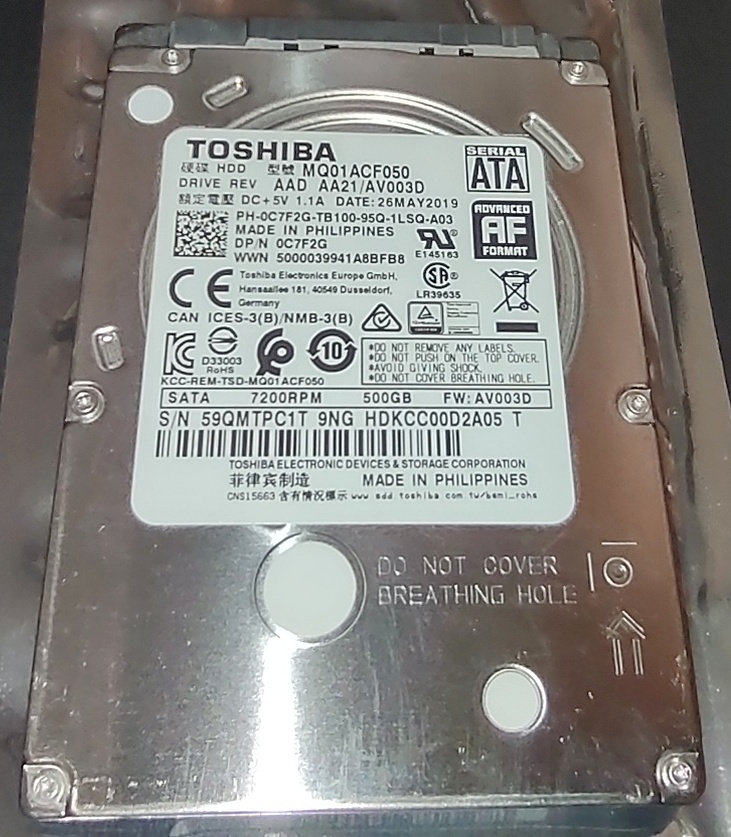 Drive #2: Toshiba MQ01ACF050 – SN: 59QMTPC1T