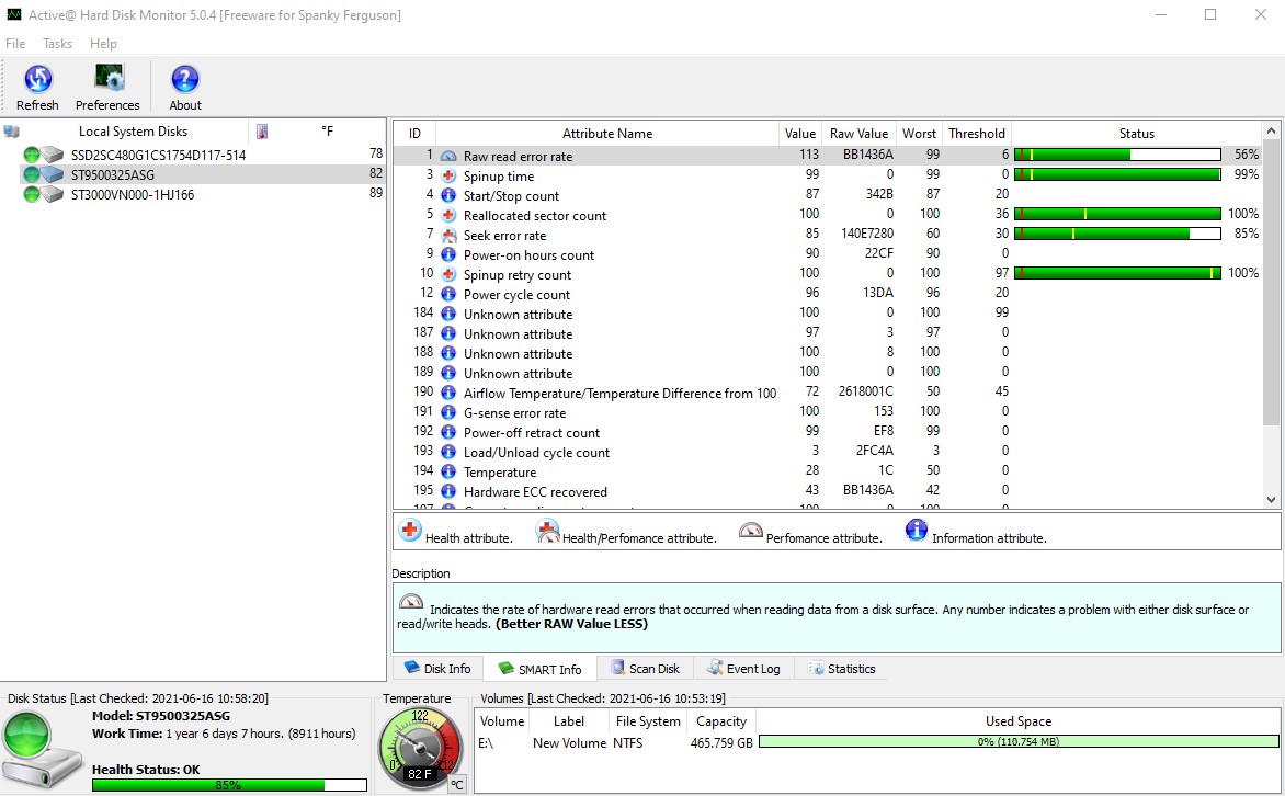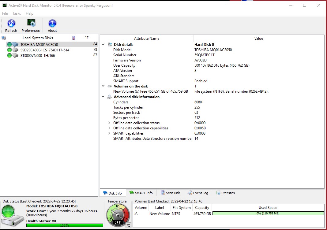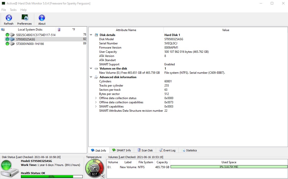 - 10864 Hours (1 Year, 2 Months, 27 Days, 16 Hours) – According to Active Hard Disk Monitor 5.0.4
