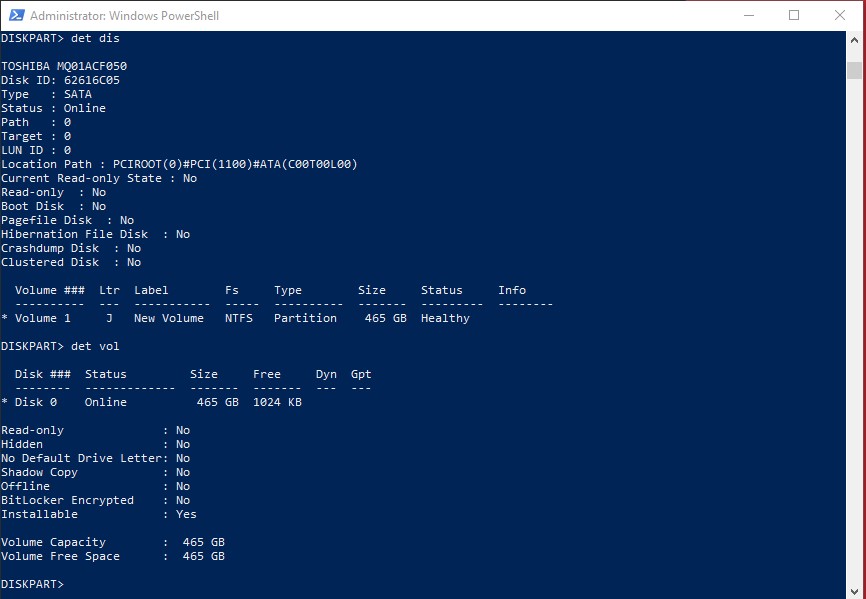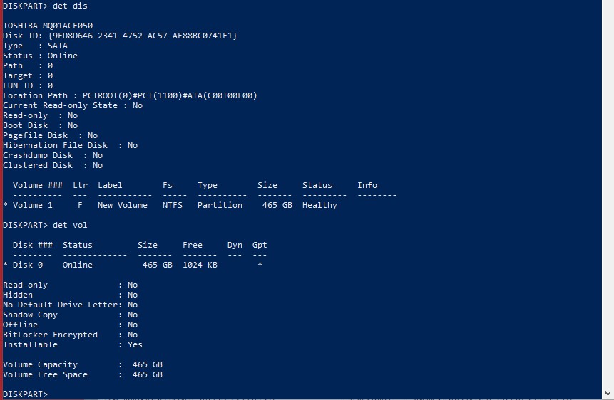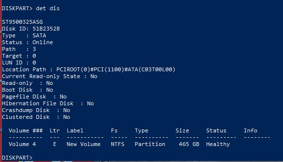 This has been partitioned with GPT with one volume created which has been formatted NTFS.