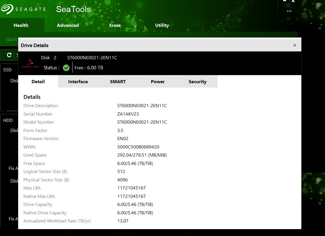 - ZA1AKV23 has 60,013 Hours – according to SeaTools
