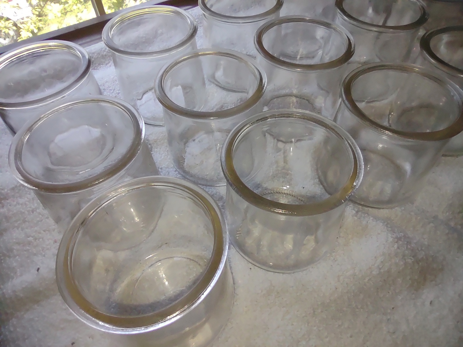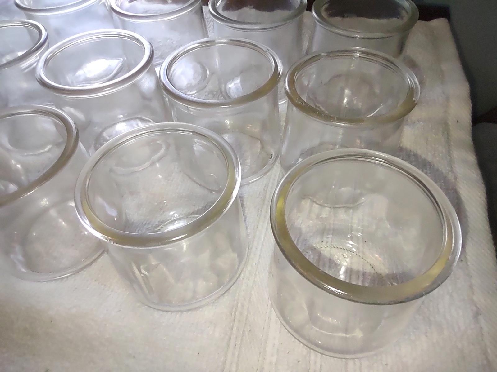 Up for sale is a lot of 21 used 5oz clear glass Yoplait Oui Yogurt jars – what you see in the pictures is what you get. These measure about 2 5/8″ in diameter by about 2 3/4″ tall. All of the labels have been removed and some of them may have sticker residue / etc – see pictures! On the bottom is ‘Single Service Use Only,’ a recycle symbol, and a 6-pointed star symbol.
