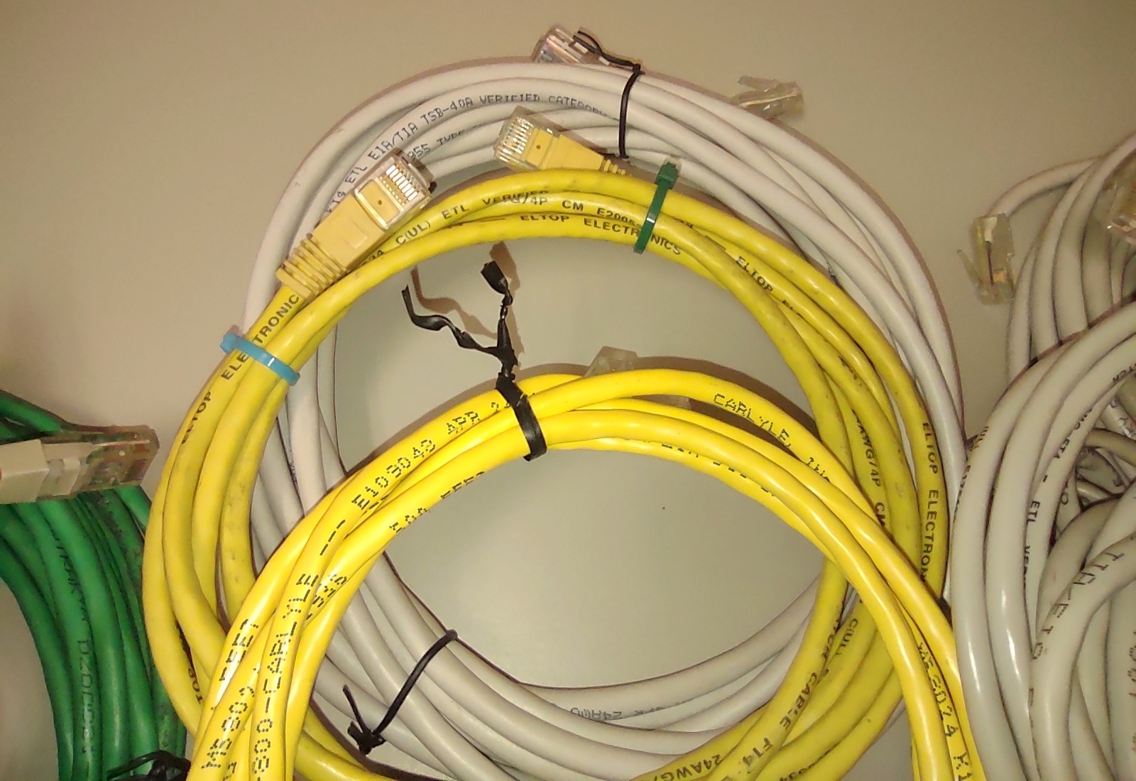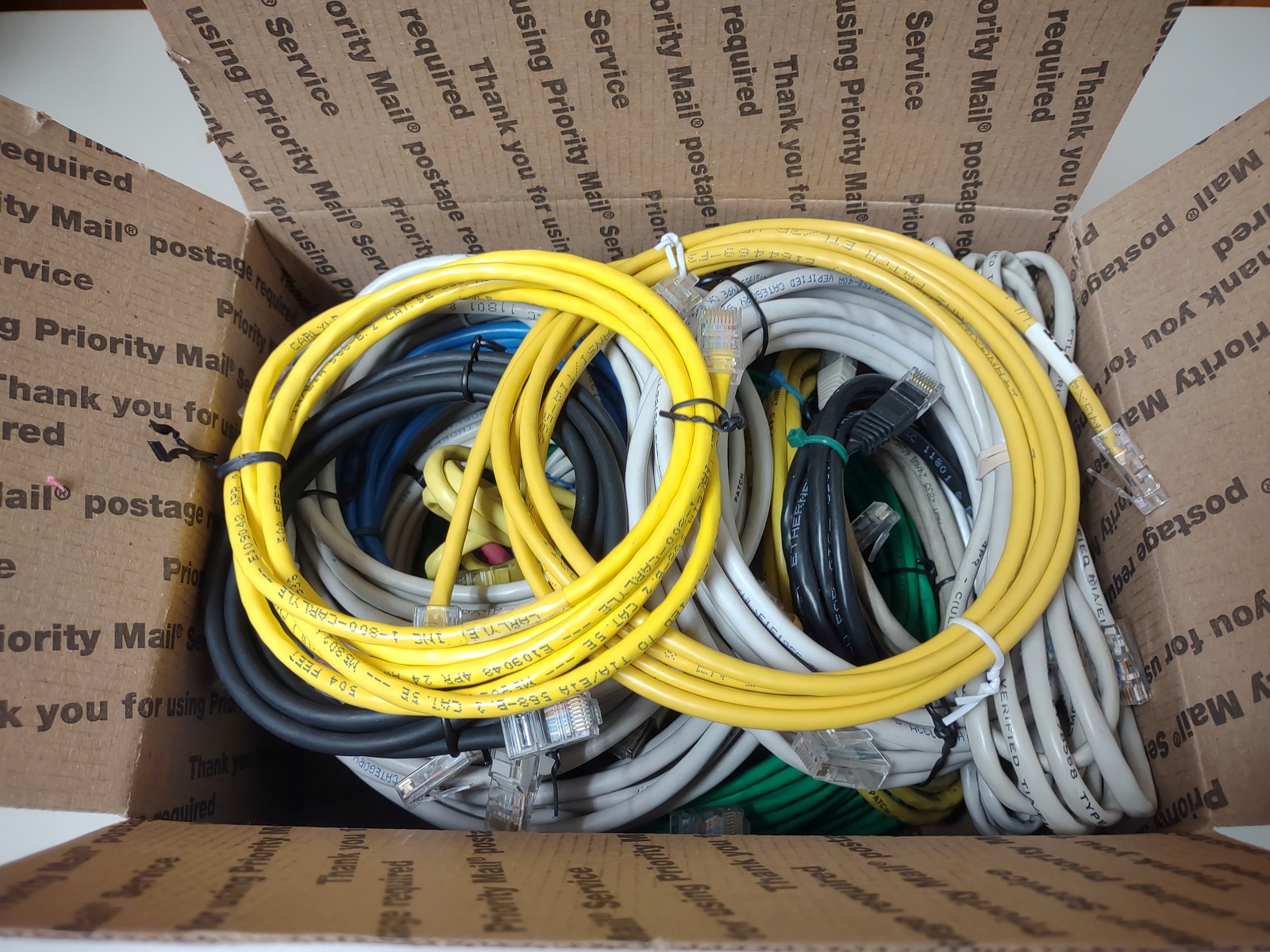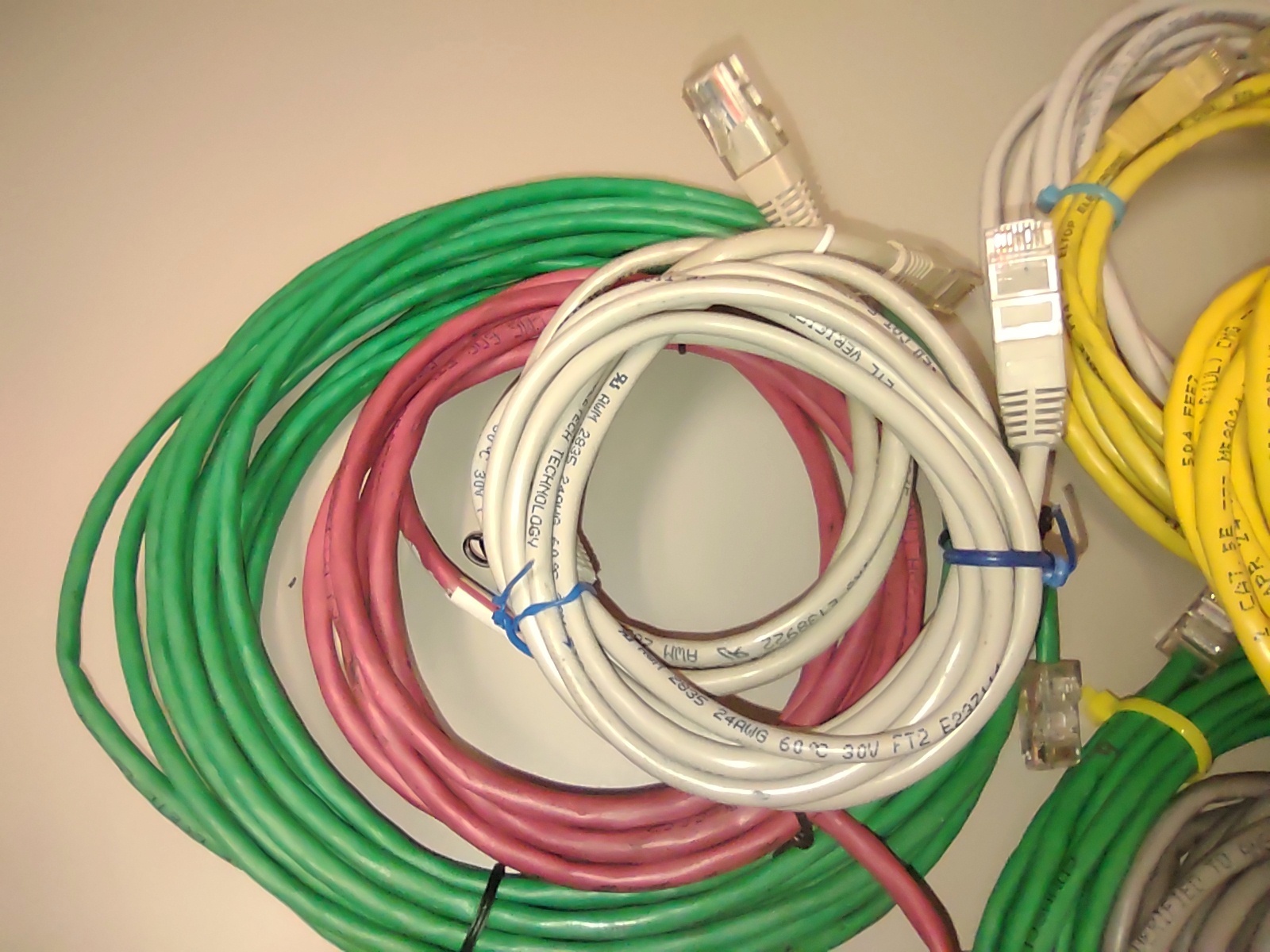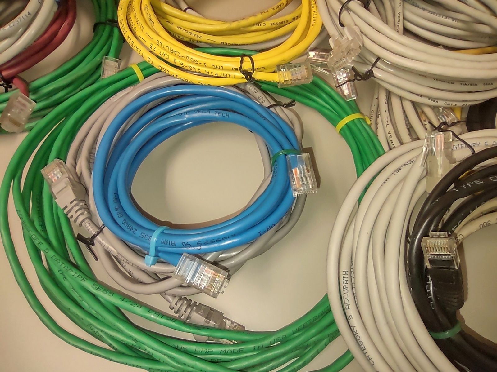 Up for sale is a lot of 22 used standard computer ethernet Cat5 / 5e patch cables. These are all leftovers from various computer installs and upgrades. Various lengths and various colors – LOOK AT THE PICTURES!. Some may be shorter or longer. Some are missing the clips and need to be re-crimped, some are factory cables and some are hand crimped – What you see in the pictures is what you get. LOOK AT THE PICTURES!