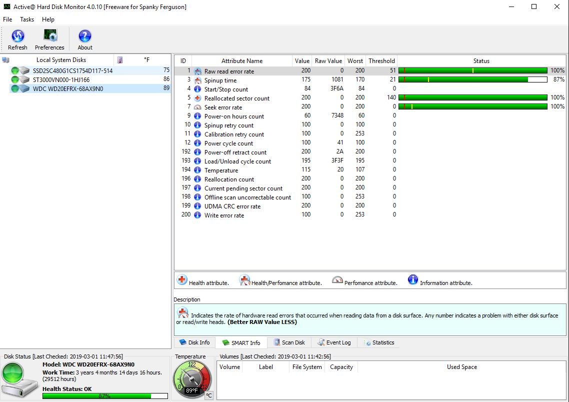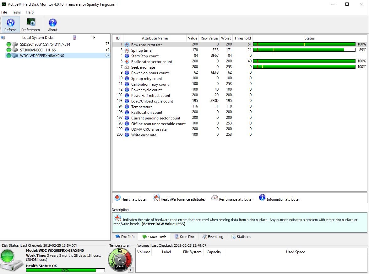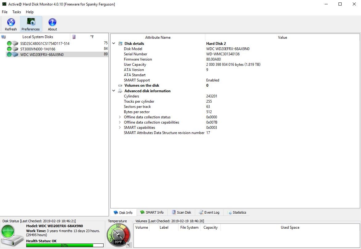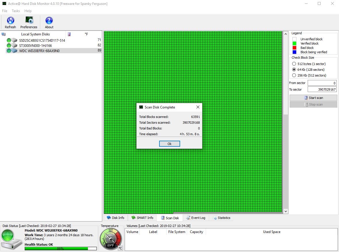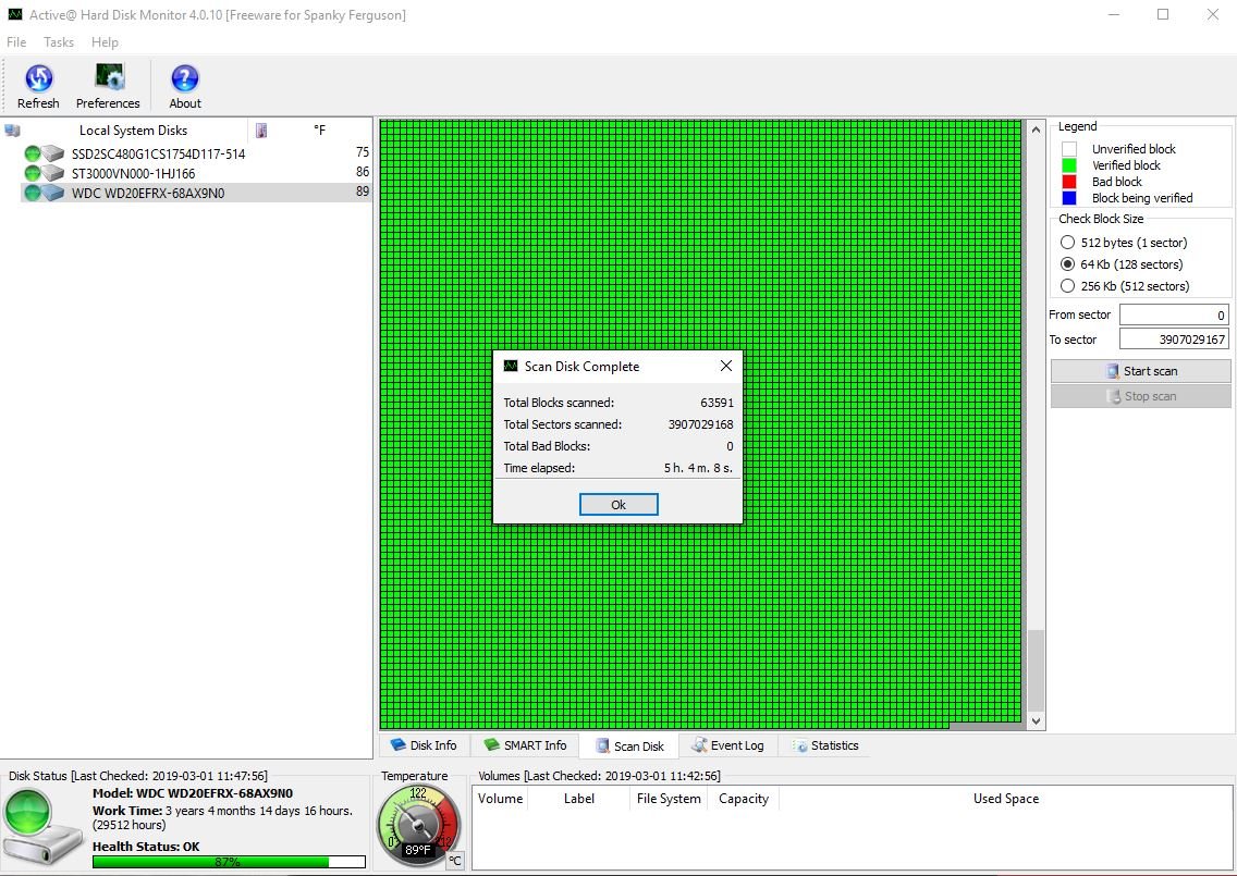 Up for sale is a lot of 4 2TB (3.5″) hard disk drives for NAS applications. These were pulled from a NAS when it was upgraded to larger capacity disks. They have been wiped clean and scandisk found no errors. These hard drives are in good, used condition you will receive the 4 hard drives described below: