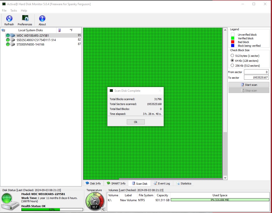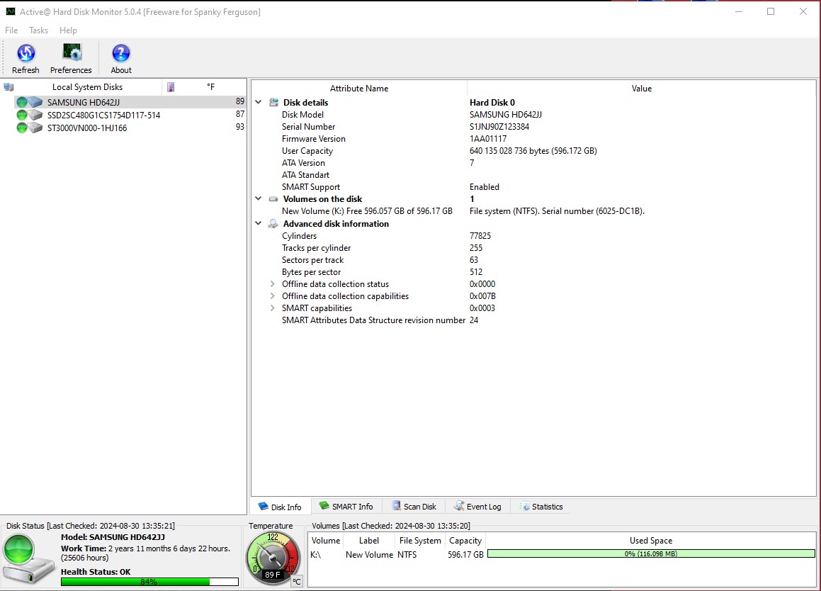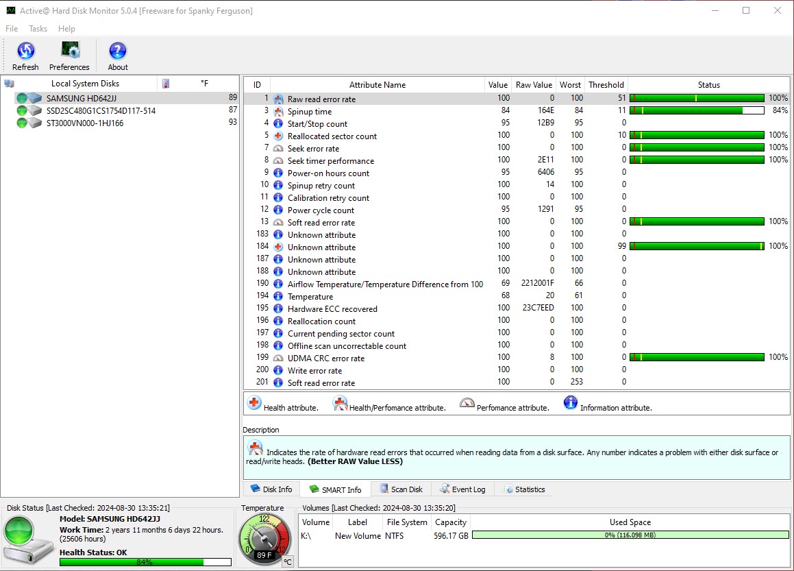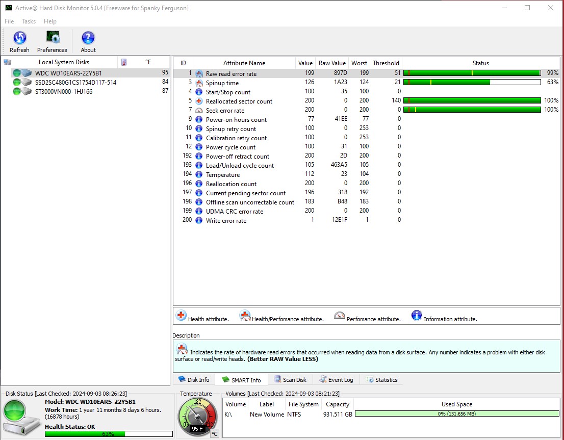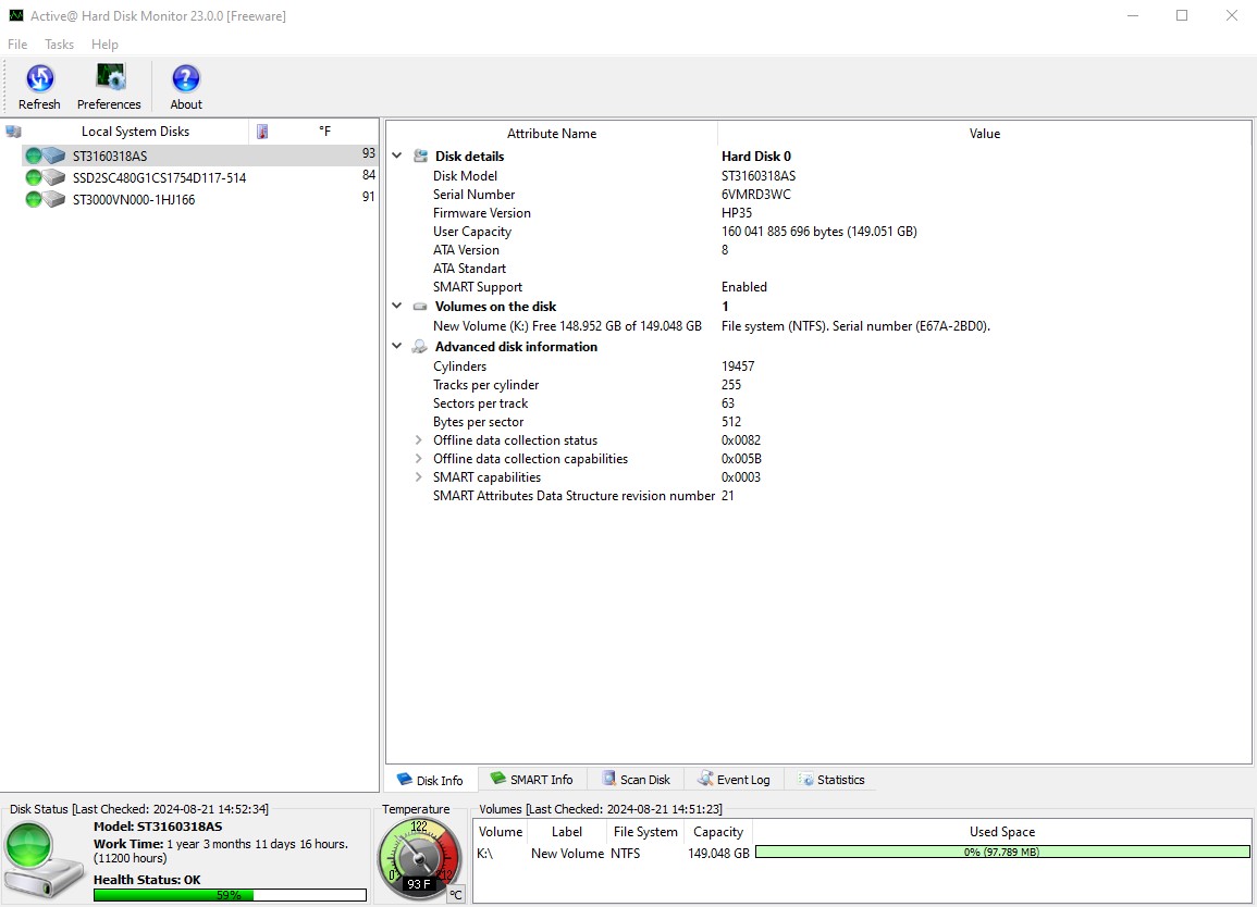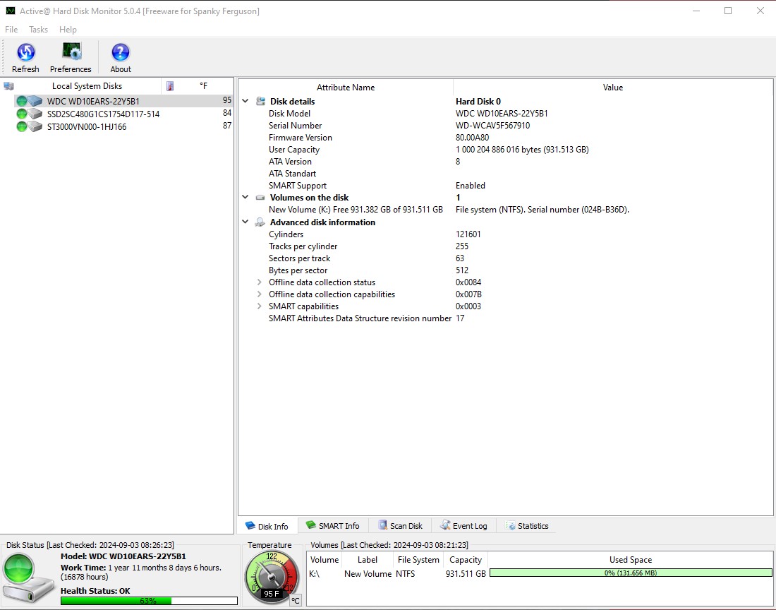 - 16,878 Hours (1 Year, 11 Months, 8 Days, 6 Hours) – according to Active Hard Disk Monitor 5.0.4