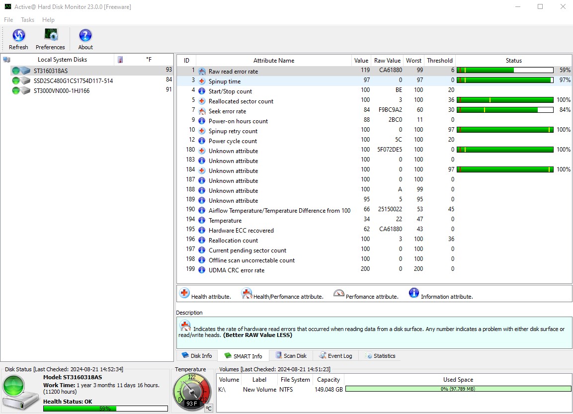 - 11200 Hours (1 Year 3 Months 11 Days 16 Hours or so) – According to Active Hard Disk Monitor 23.0.0
