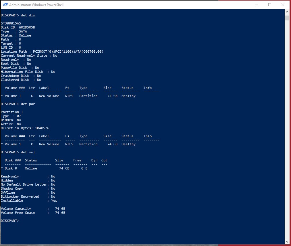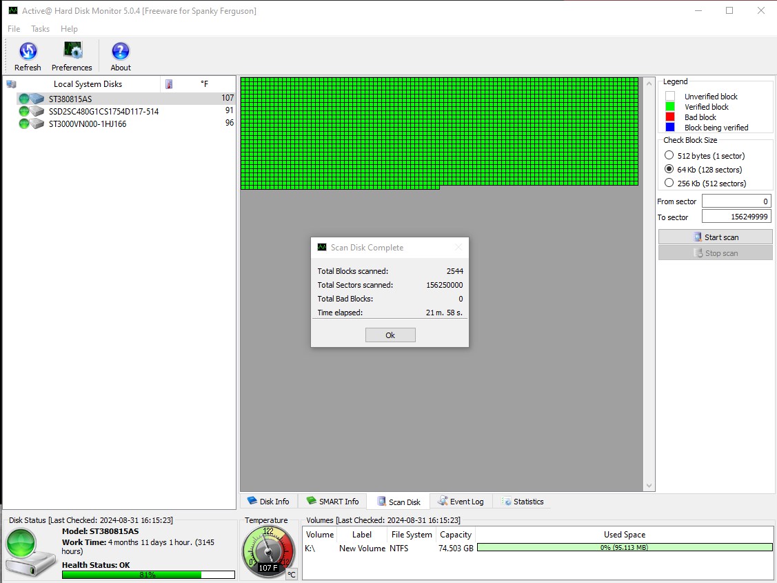 This drive was pulled from an old Dell desktop PC and has been securely erased and scandisk found no errors