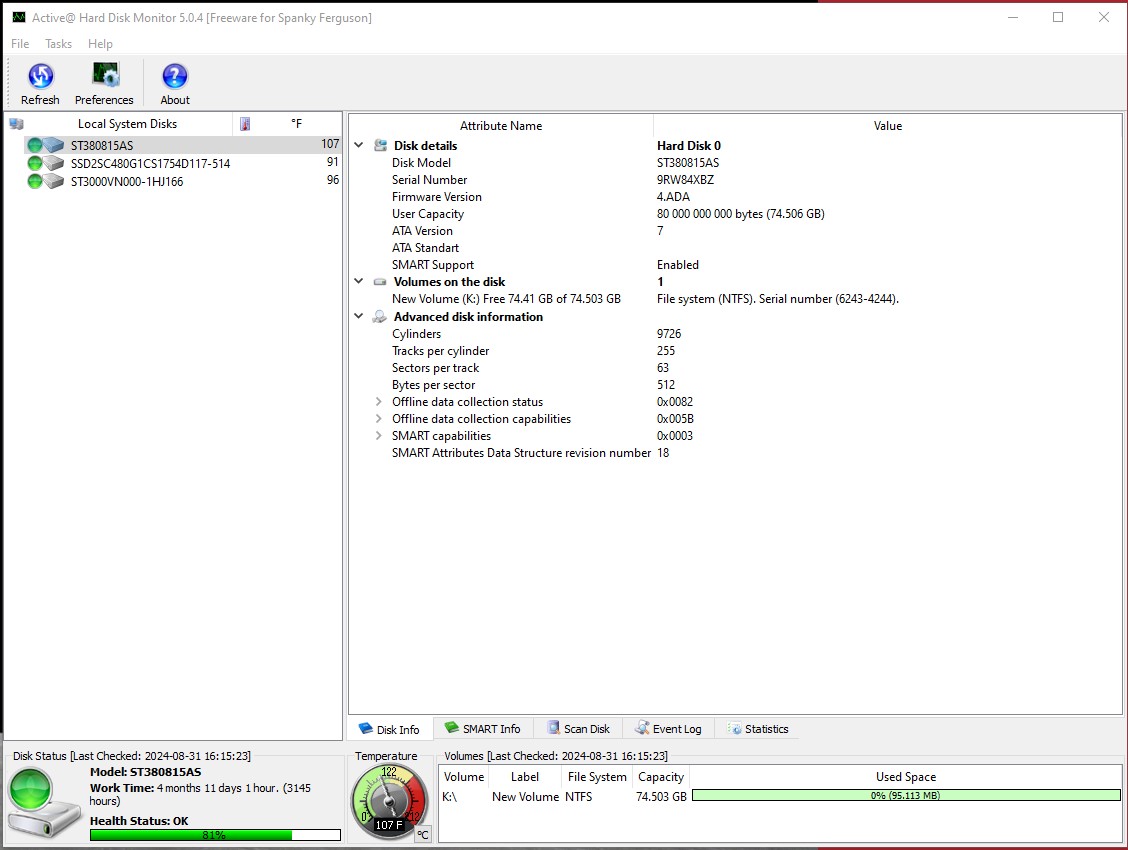 - 3145 Hours (4 Months, 11 Days, 1 Hour) – according to Active Hard Disk Monitor 5.0.4