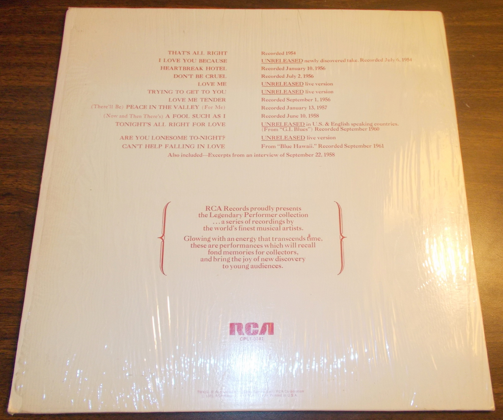 - Elvis Presley Legendary Performer Vol 1 33 1/3 RPM Vinyl 12″ Record RCA CPL1-0341 1973