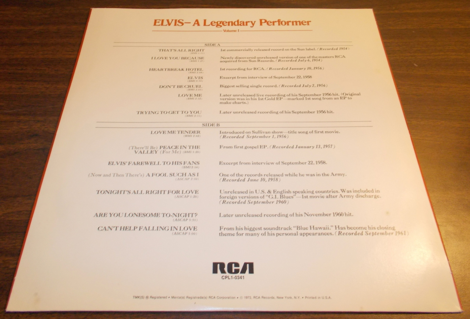 Elvis Presley Legendary Performer Vol 1 33 1/3 RPM Vinyl 12″ Record RCA CPL1-0341 1973