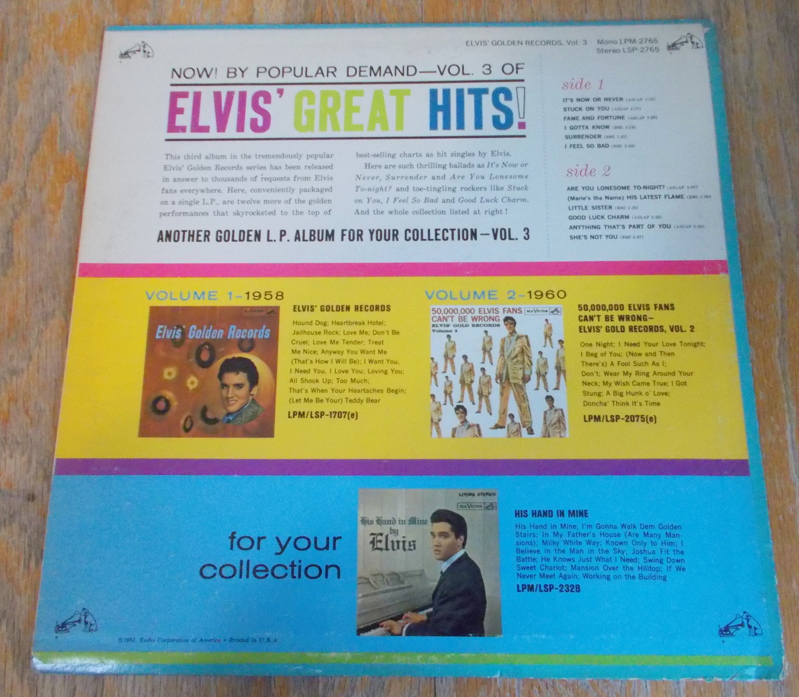 - Elvis’ Golden Records Volume 3 33 1/3 RPM Stereo Vinyl Record Presley LSP-2765