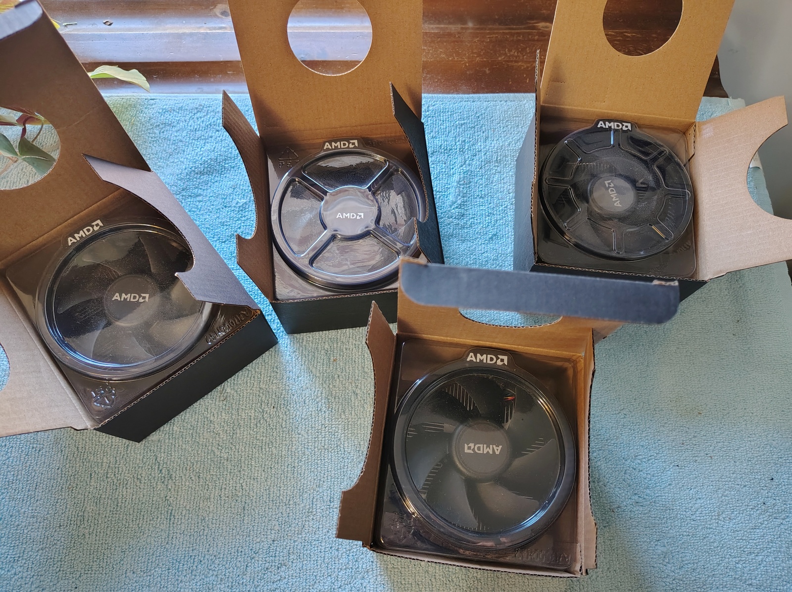 All four are in unused condition and still have the factory applied thermal compound on the bottom.