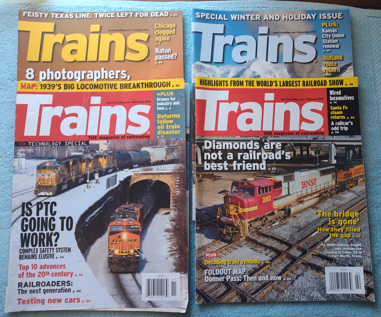 Up for sale is an lot of 4 old Trains magazines from 2014 & 2015. The November 2014 issue has some cover separation and creasing / wrinkling, but all are in good readable condition – LOOK AT THE PICTURES!