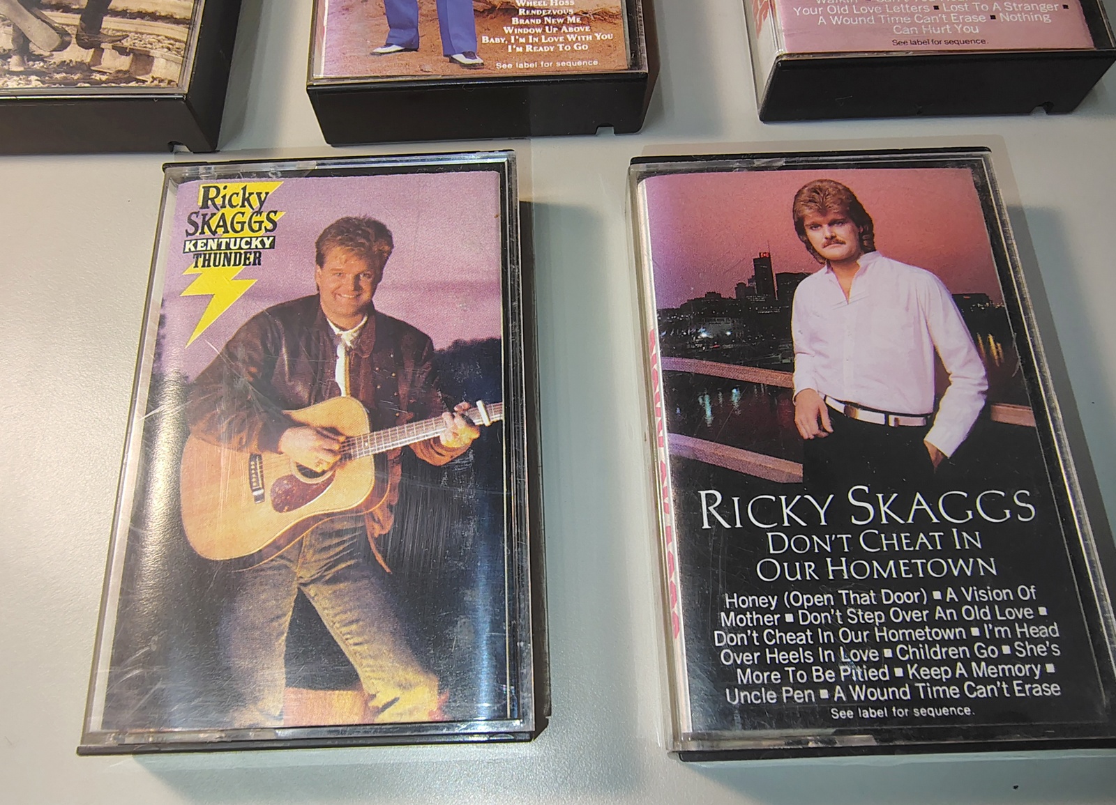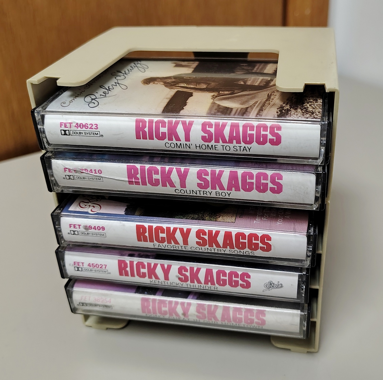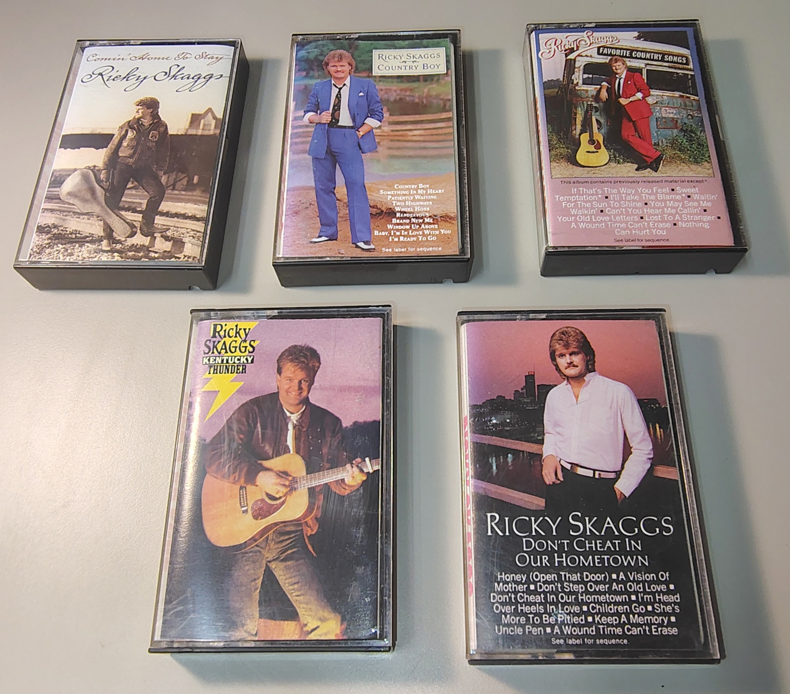 Up for sale is a lot of 5 Ricky Scaggs Cassette Tapes from the 1980s. All are in used, untested condition as we do not have a way to play them and all the cases are at least a little bit scratched, some chipped. It’s old plastic! Some of the labels are a bit faded as well – Please carefully read the notes below & examine the pictures BEFORE you purchase.