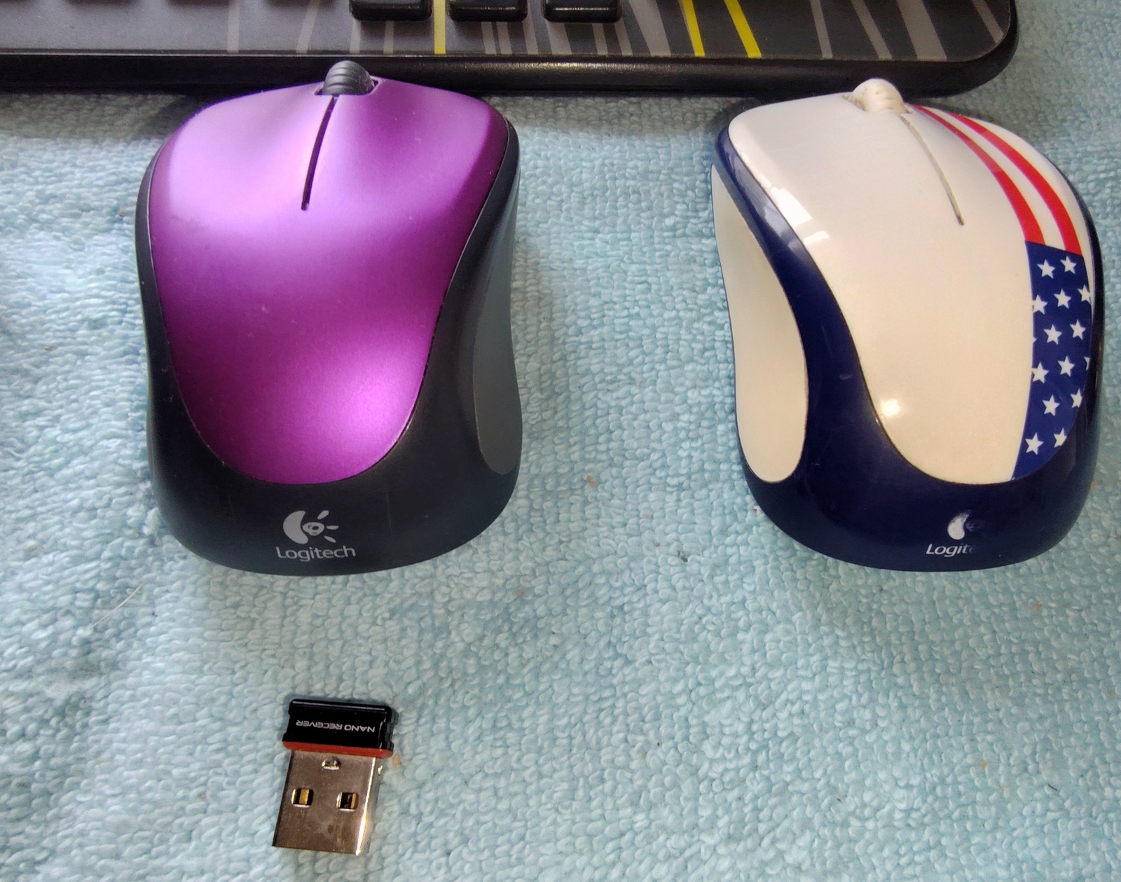 Up for sale is a lot of 6 DEFECTIVE Logitech wireless keyboards and mice for Parts or Repair only. The blades of grass keyboard and Black M325 Mouse and USA M317 mouse are all connected to the Unifying receiver which is included in the battery compartment of the black M325 mouse. The purple M315 is able to connect to Logitech Unifying, but is connected to its own receiver (not unifying). The glossy black K360 won’t power on and the other M325 is connected to a different unifying receiver which is stored in the bottom of the mouse. If you need more than two unifying receivers, please add $5 to your order and we’ll throw in another one. These all connect to the computer and function (except the glossy black K360 which doesn’t seem to power on at all) – but only kinda sorta: some of the buttons on the mice click, but sometimes don’t register a click and some feel loose. One of the mouse has an issue where the battery seems to disconnect – we suspect a weak spring in the battery compartment. The Blades of Grass keyboard seems to function ok, but the letters are a bit worn – LOOK AT THE PICTURES! No batteries are included – you will need to provide your own!