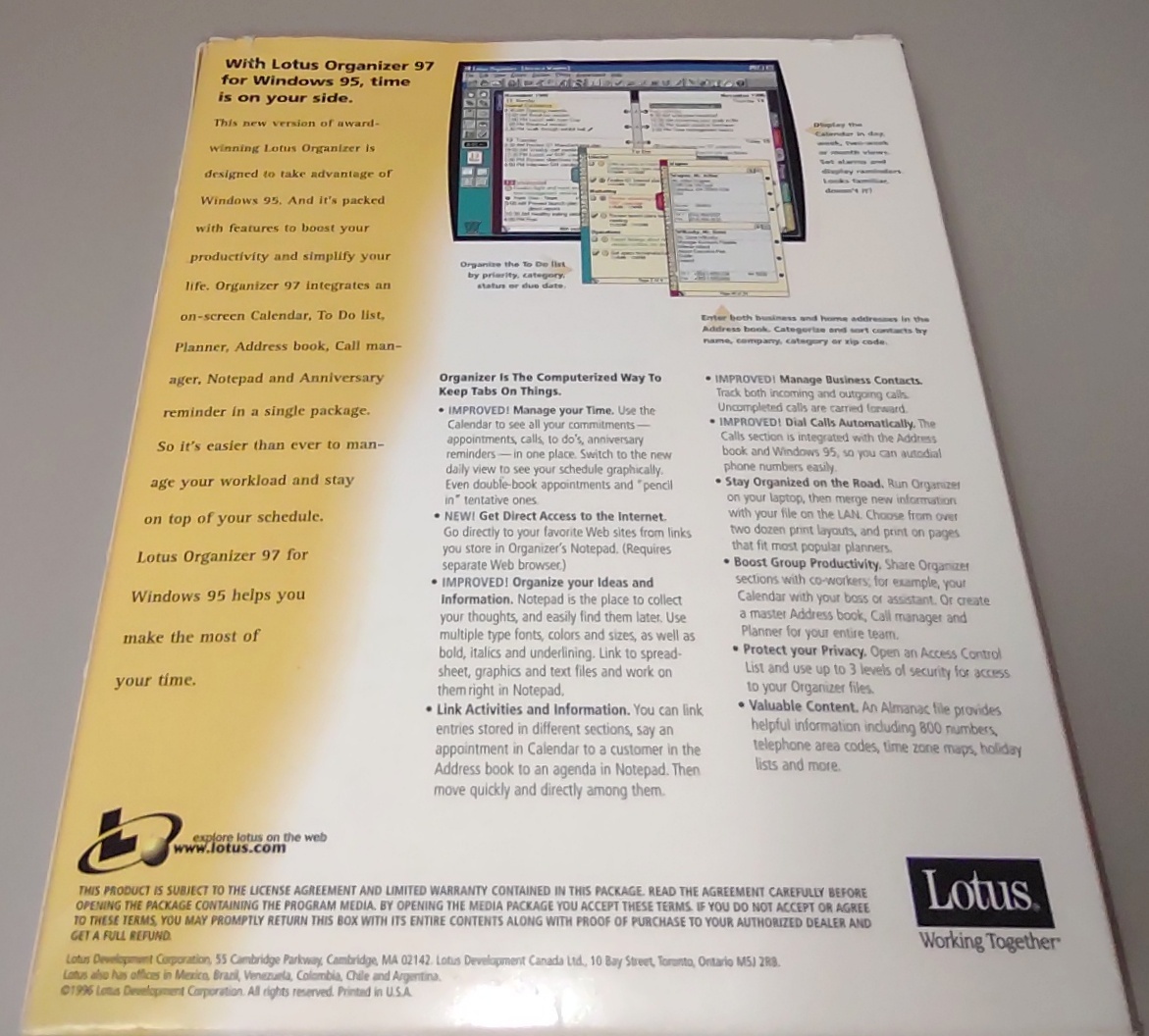 Here is a link to Wikipedia’s page on Lotus Organizer.