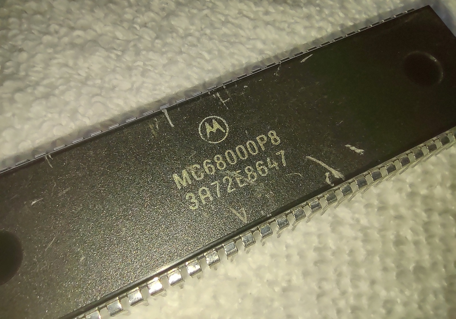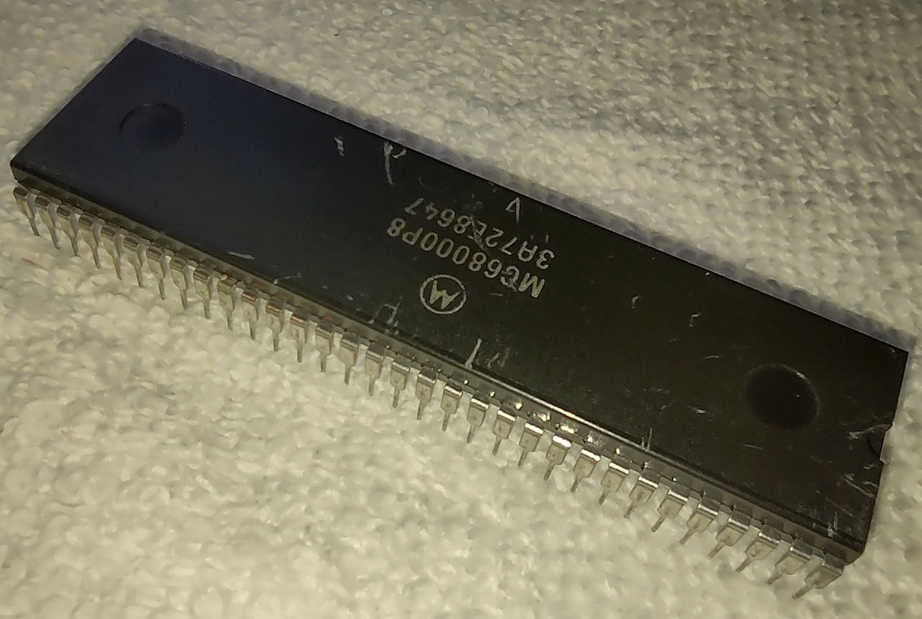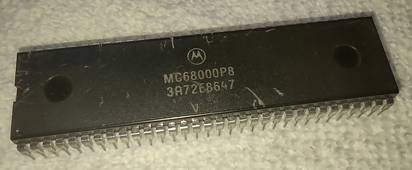 Up for sale is a Motorola MC68000P8 CPU in a black plastic 64-pin package; It is in used condition.
