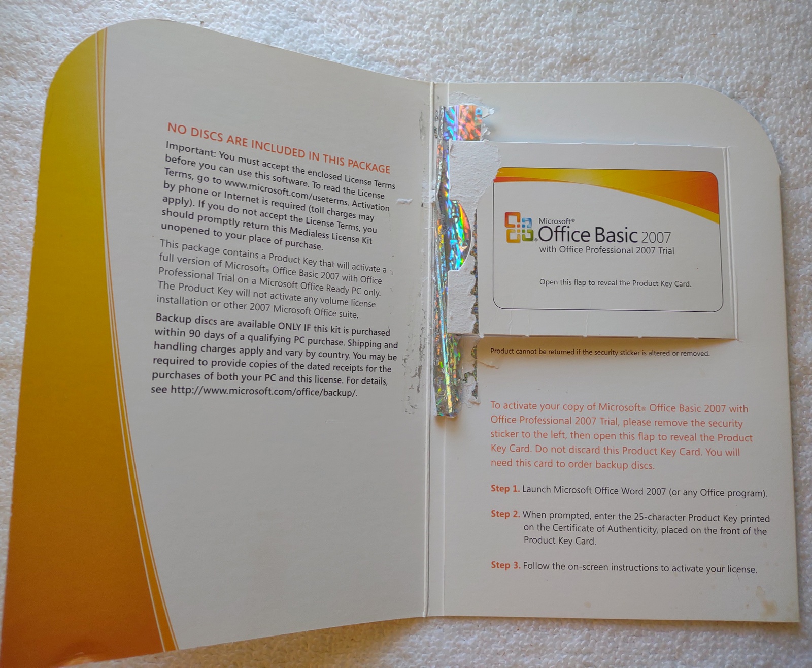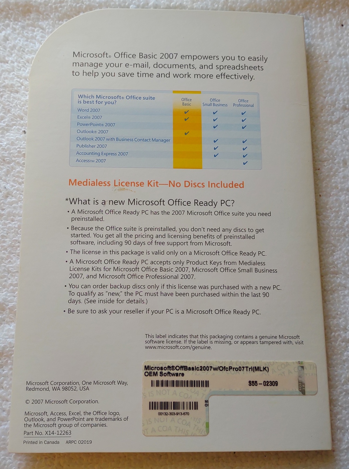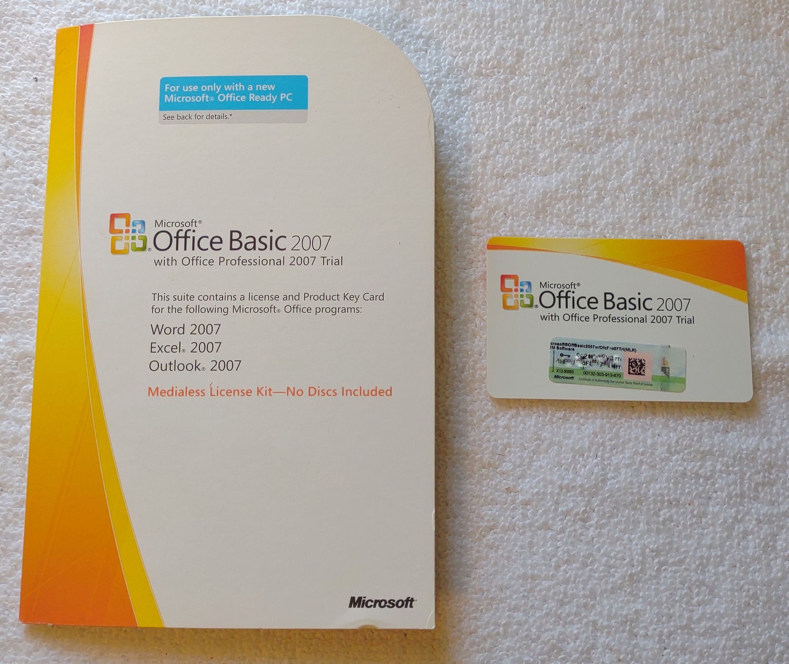 Up for sale is a used Microsoft Office Basic 2007 original medialess license kit from 2007. This is for installing Microsoft Office 2007 Basic on your PC with Office pre-installed. X14-12263 & X14-15747. This is in good used condition – SEE PICTURES! This comes with the original product key ONLY! – YOU DO NOT GET A DISC! If you need the installer, you can send us your email address and we can share the installer on OneDrive for you to download.