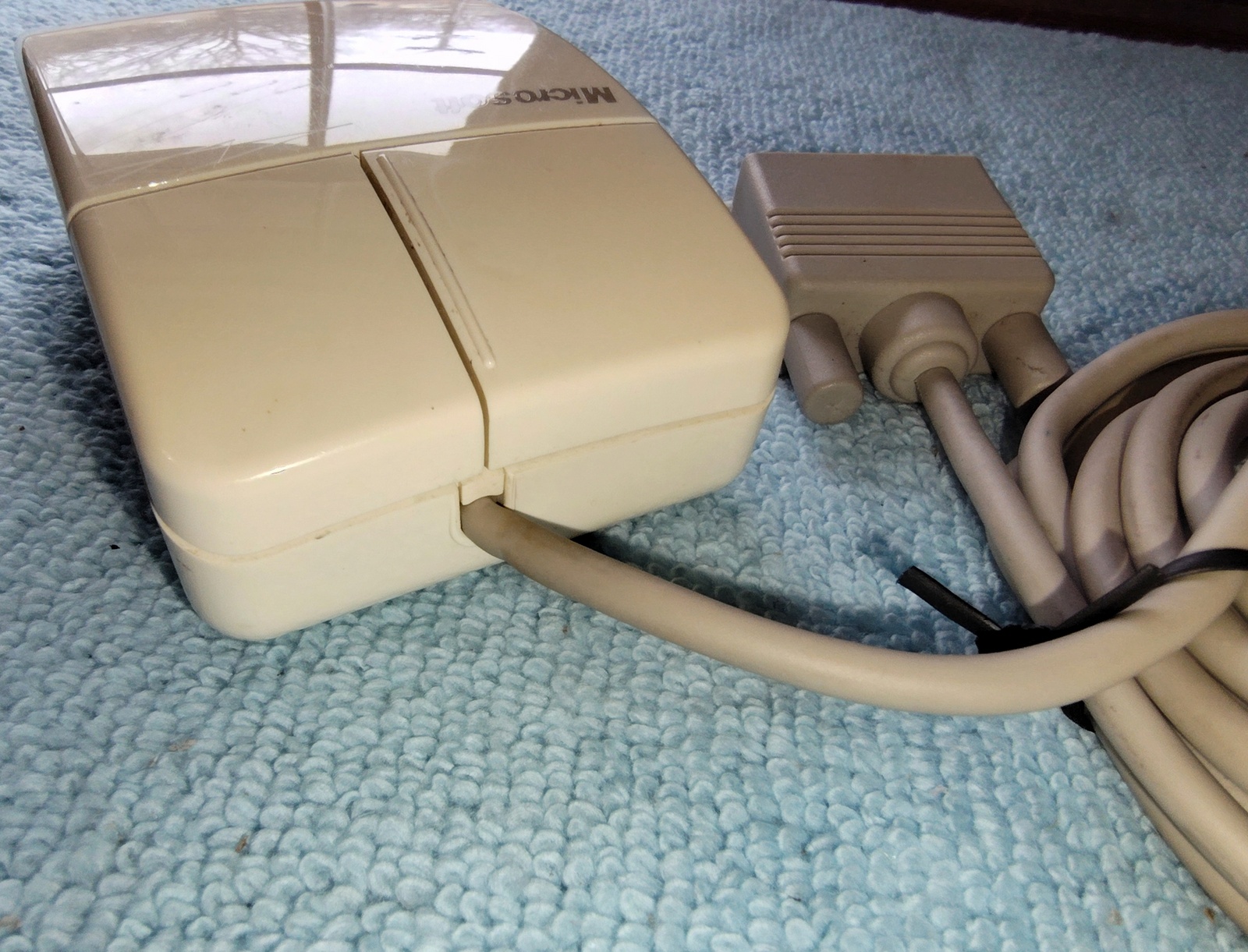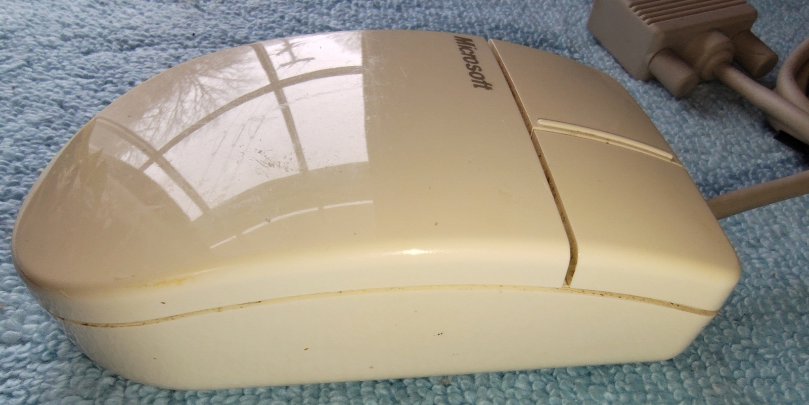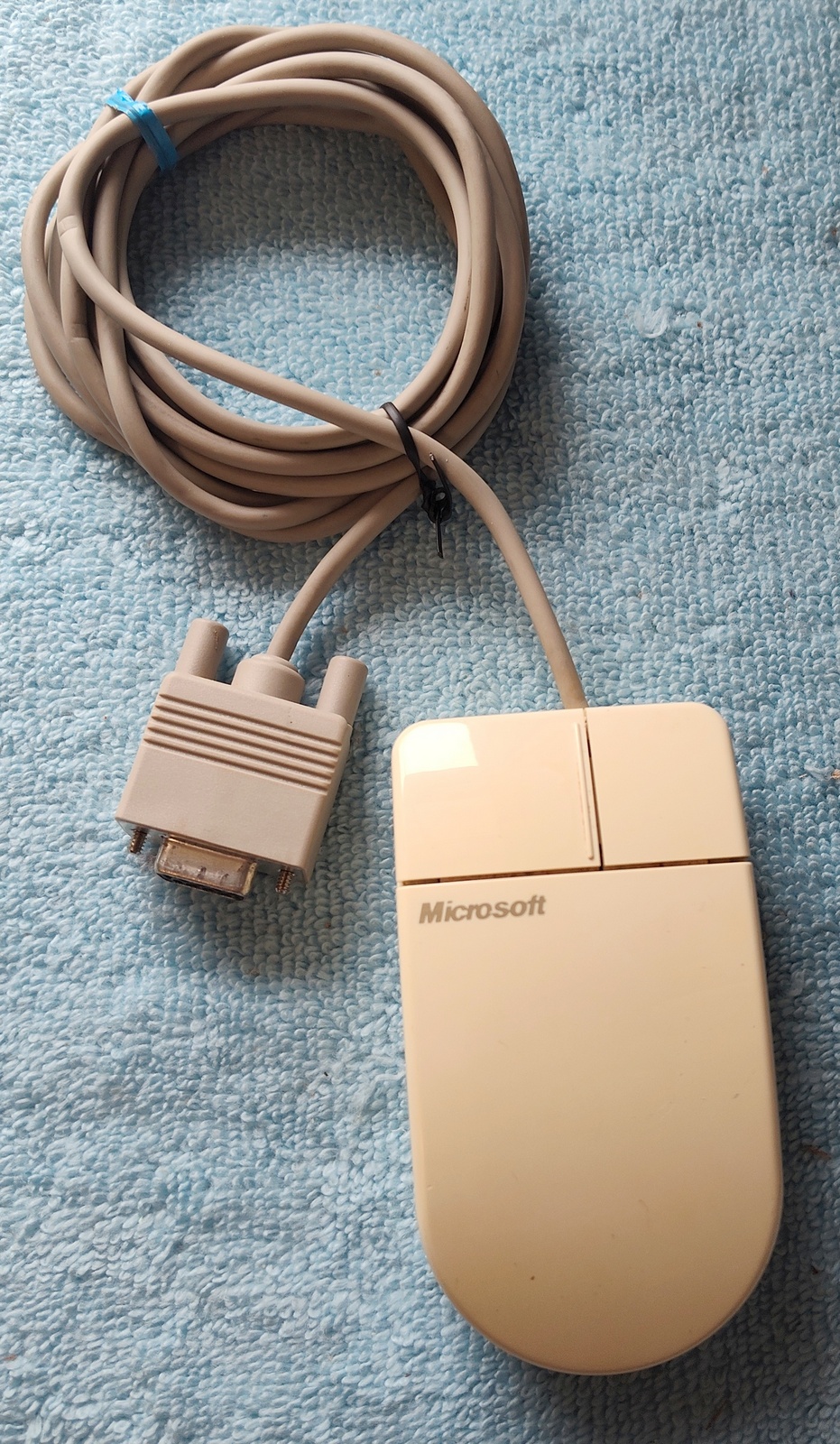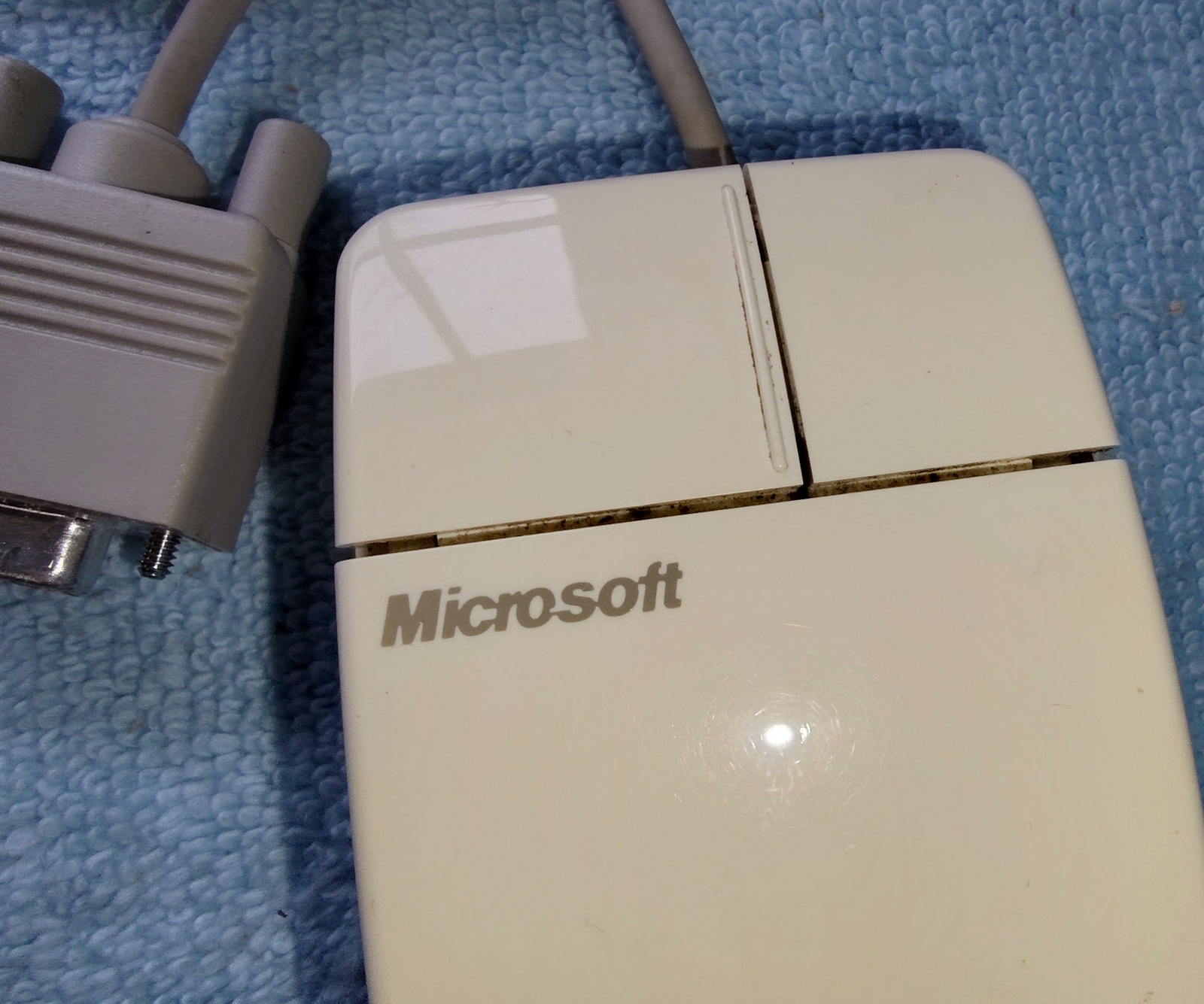 Up for sale is a Microsoft mouse from the early 1990’s – it is in good, used condition except that the rollers inside of the ball compartment are a bit dirty – SEE PICTURES!. We connected it to our old Windows XP machine and it seems to work just fine (detected as a Microsoft Serial Mouse) – well, as fine as any of the old ball type mouses worked!