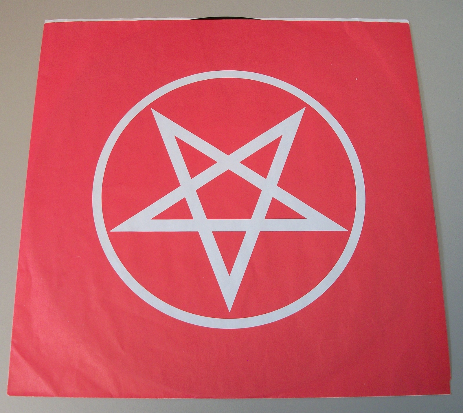 - Includes plain paper sleeve w/ lyrics (record has broken through the edge)