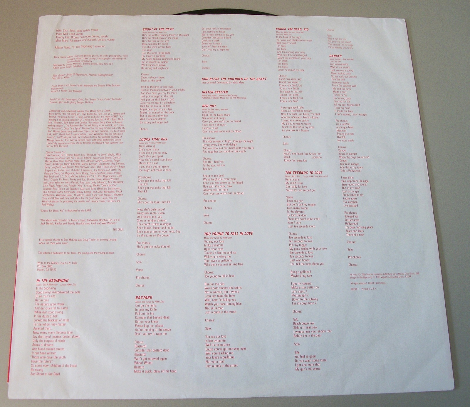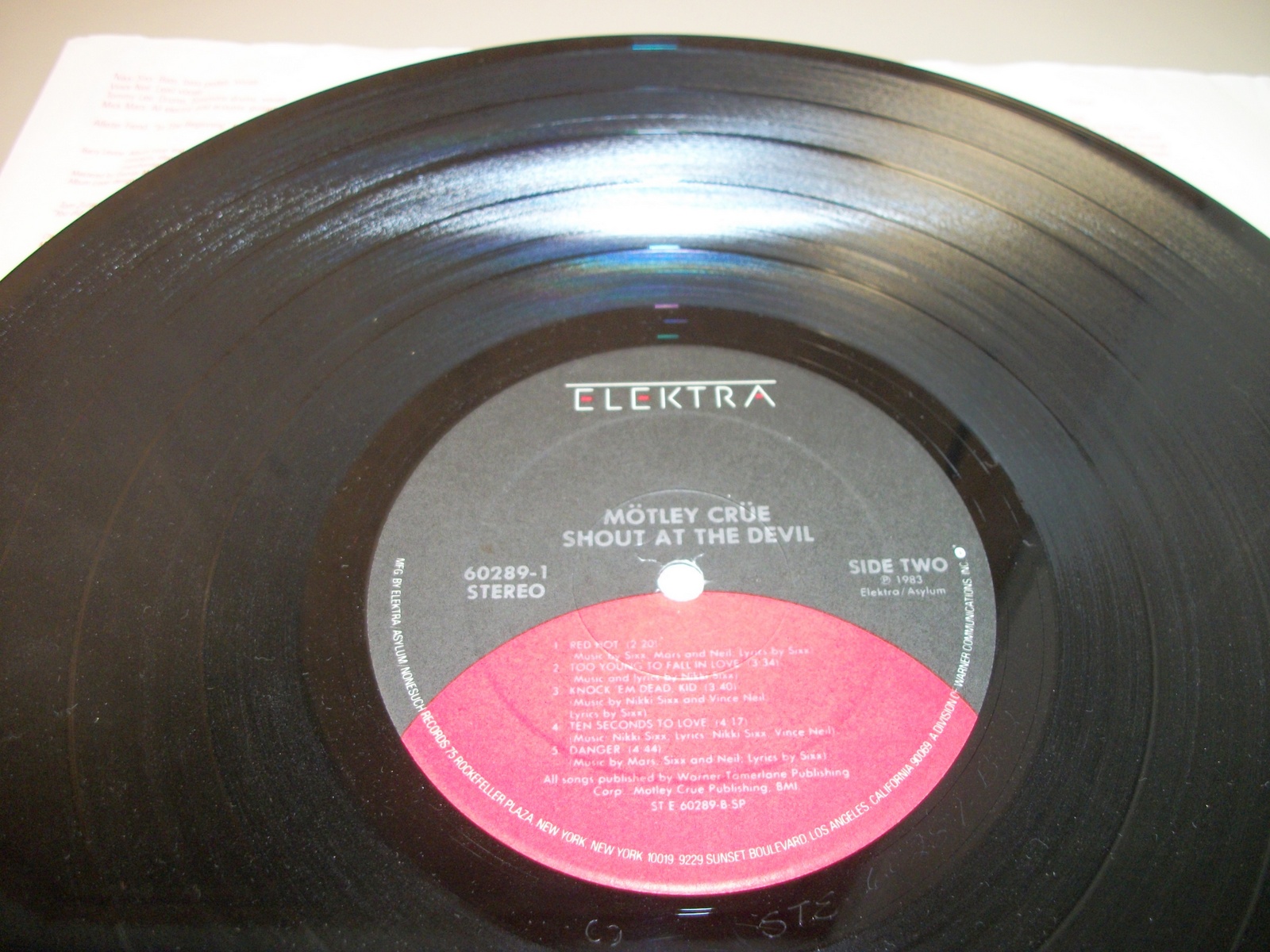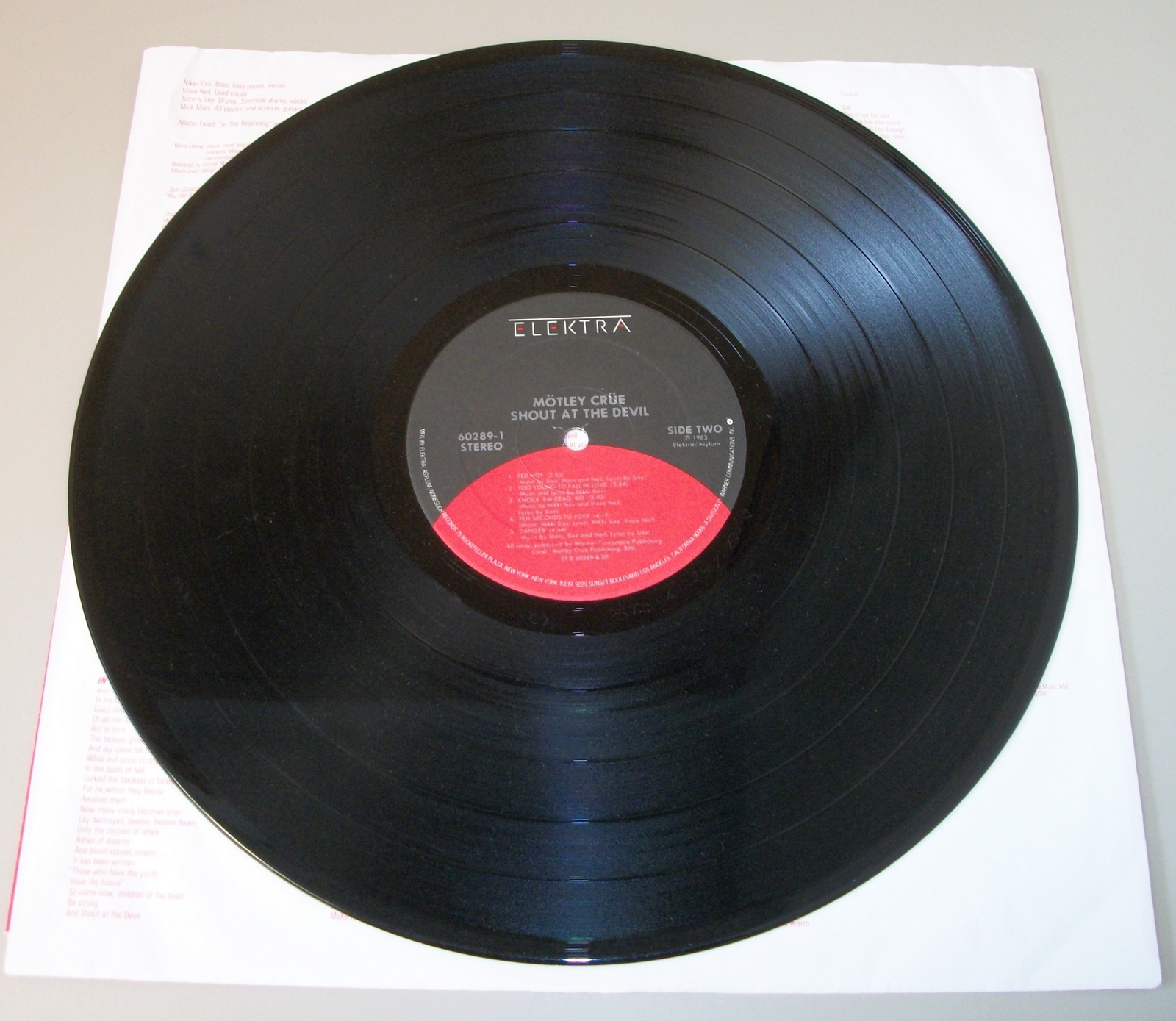 Up for sale is Motley Crue’s album Shout At The Devil on vinyl from 1983. LOOK AT THE PICTURES! Used condition, some wear around the edges and light creases and the record has broken through the edge of the insert. This record is in overall pretty good condition for a decades old record – see pictures!