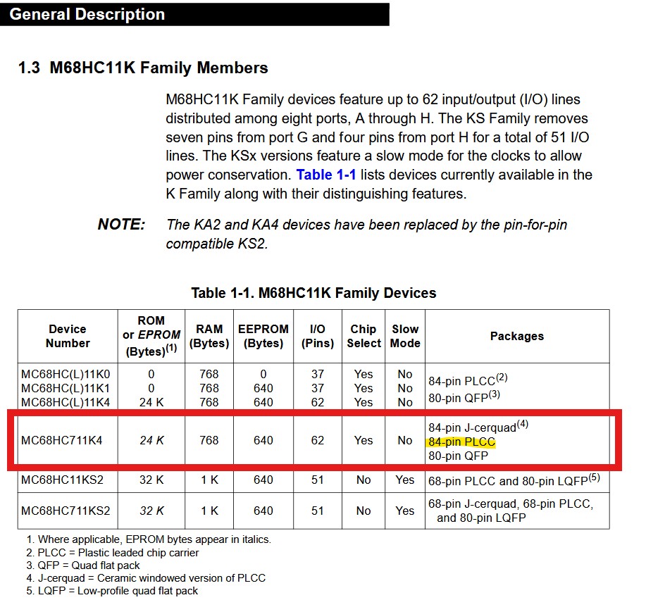 - Motorola XC68HC711K4CFN4