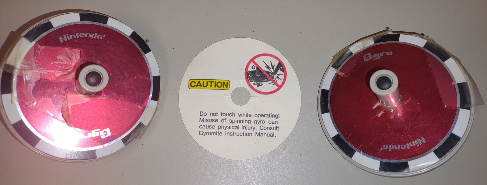 - 1 x Warning label for Gyro ‘Do not touch while operating! Misuse of spinning gyro can cause physical injury. Consult Gyromite Instruction Manual’