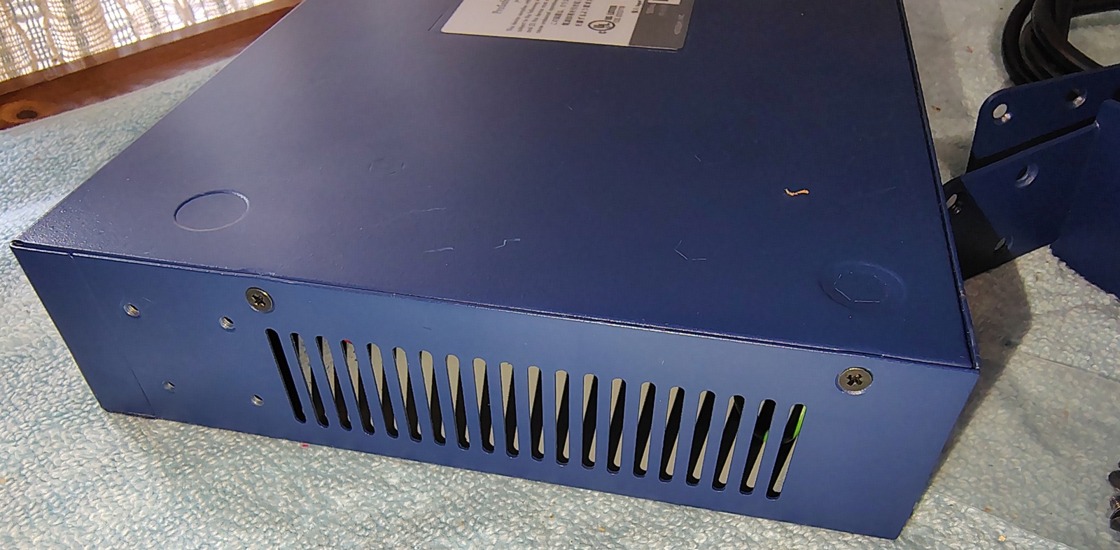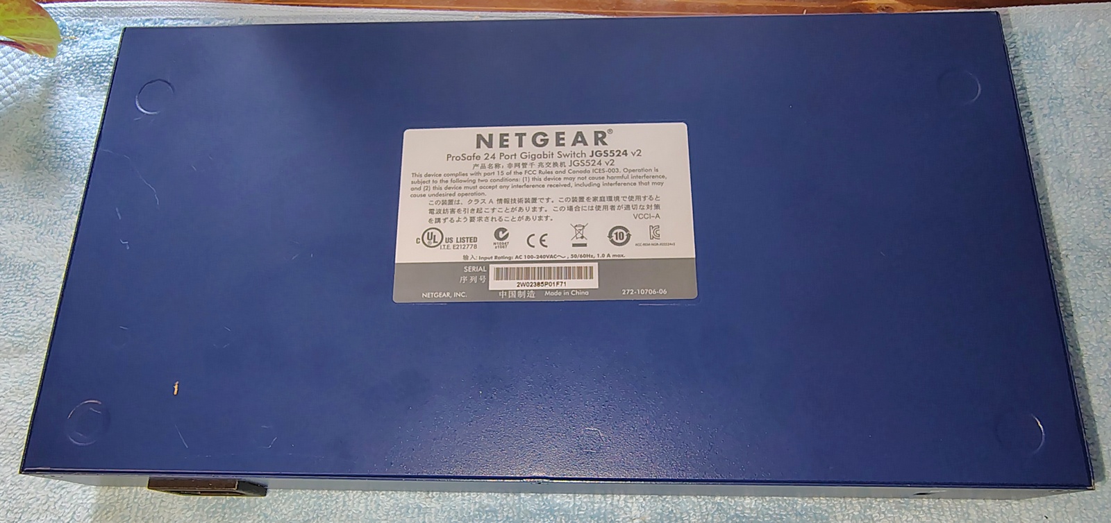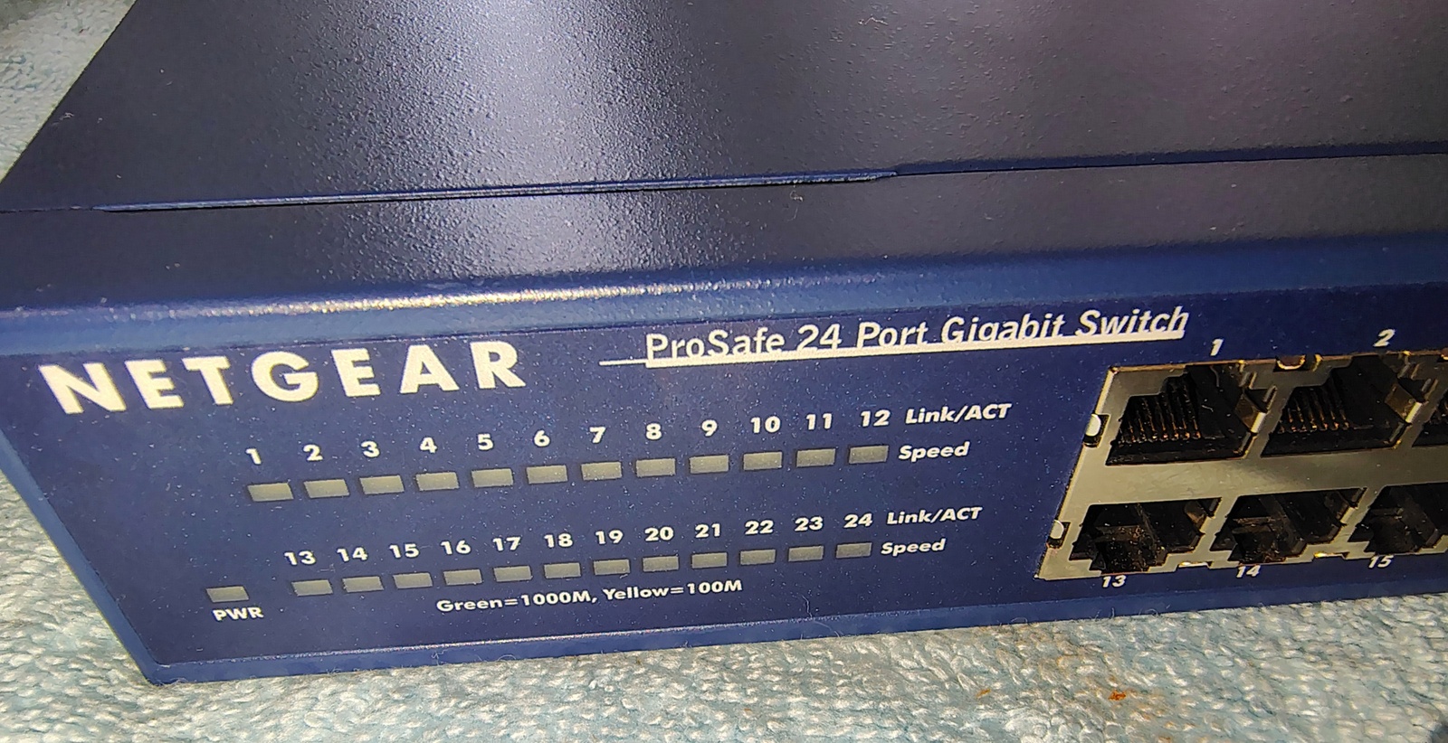 Up for sale is a good used Netgear ProSafe JGS524 v2 network switch. We used this switch for several years and have now upgraded to a newer, faster PoE switch and have this one left over. The rack mount brackets and power cable are included. Please note the small dent on the top. Hope someone out there on the interwebs can put it to use!
