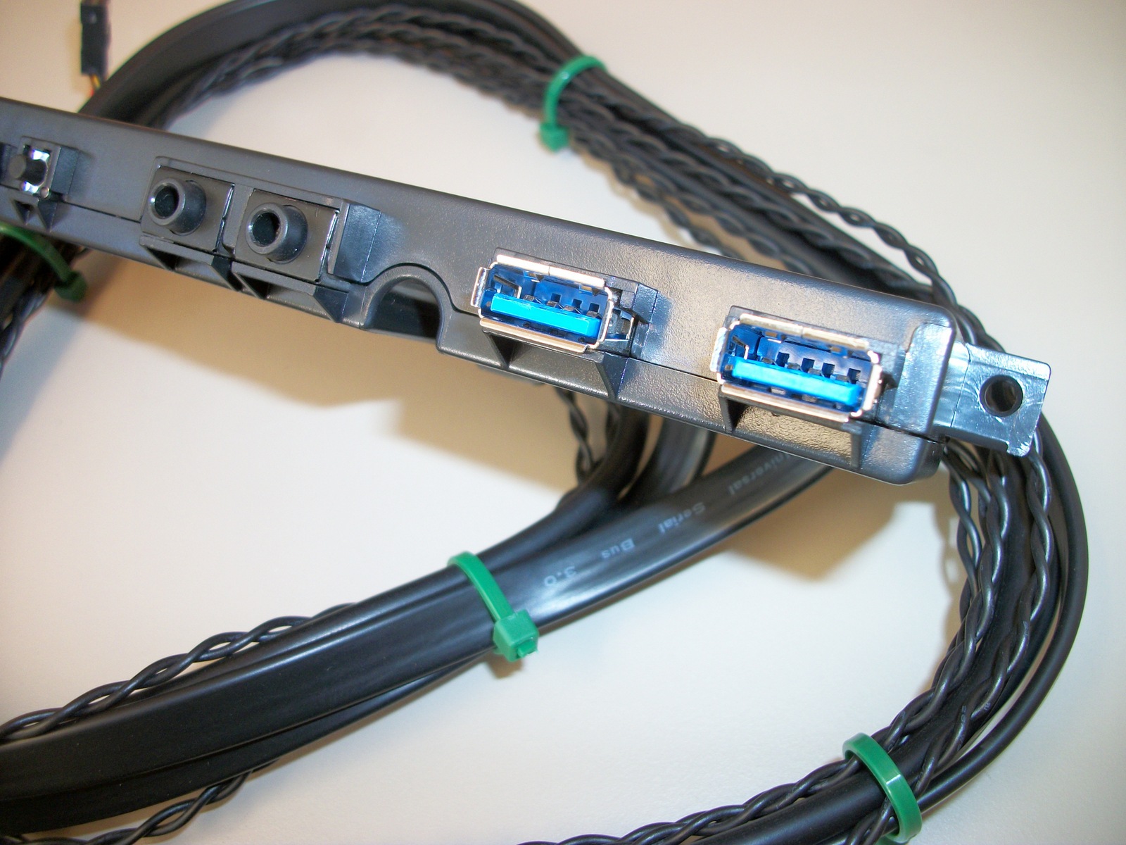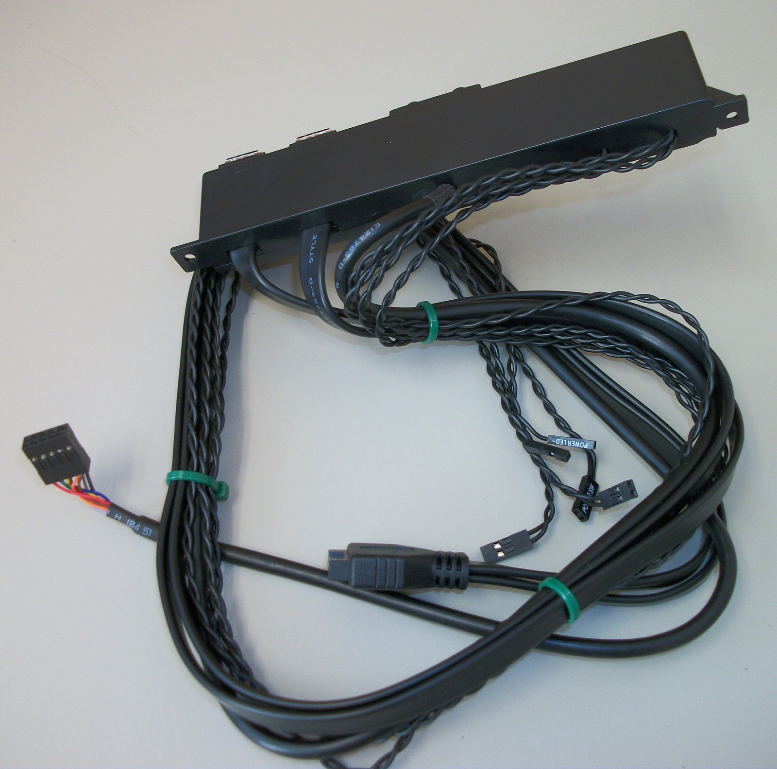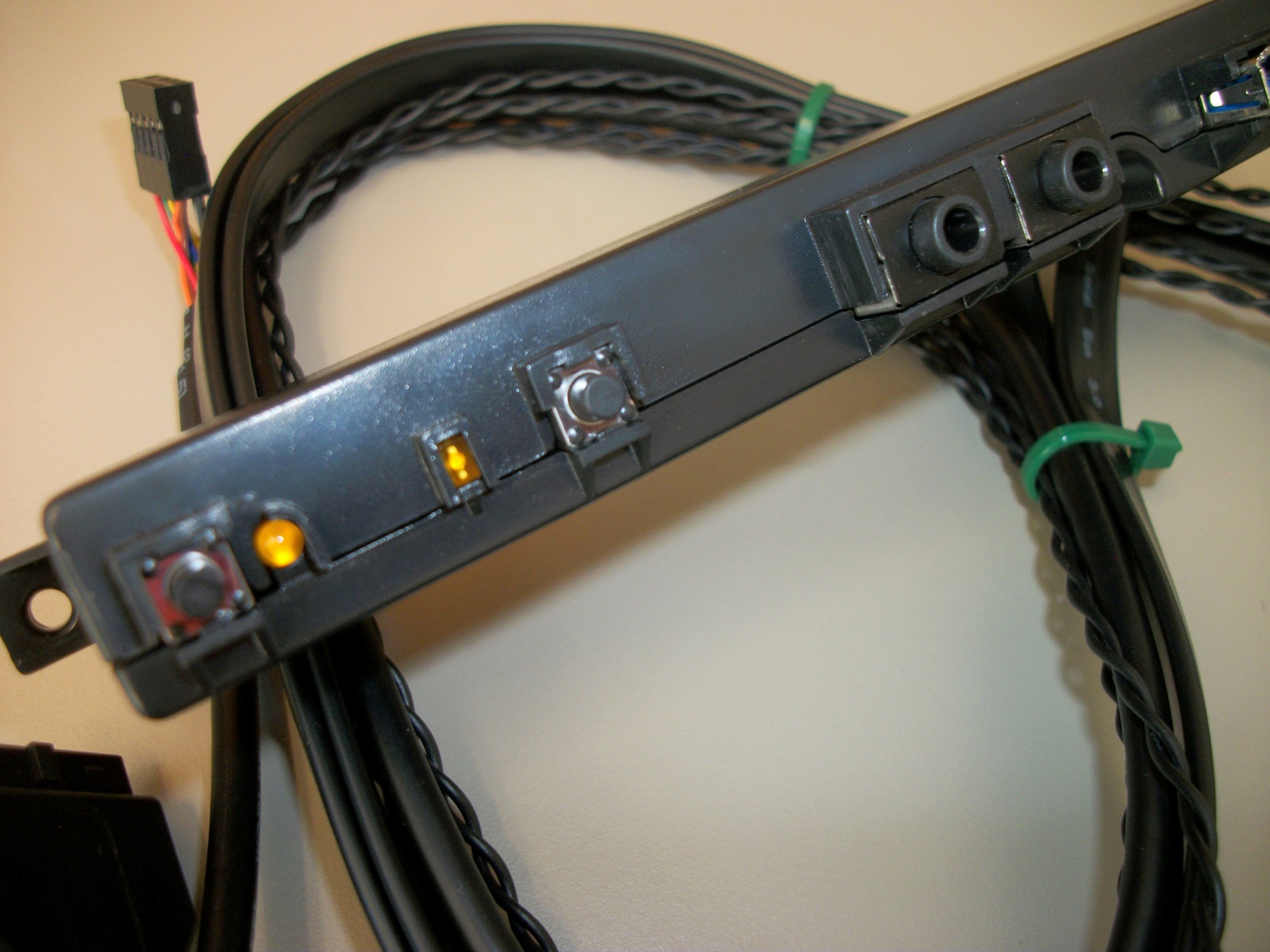Up for sale is an I/O panel for use with Corsair Graphite 230T cases. It may fit other cases, but we’re not for certain – you should check with Corsair for compatibility with your case BEFORE you purchase this one. The LED is orange / amber. It also may be useful in your own project or custom case – you will need to provide your own fasteners to screw the panel into your case. The longest cable, the HD audio connector, is approximately 36″ long.