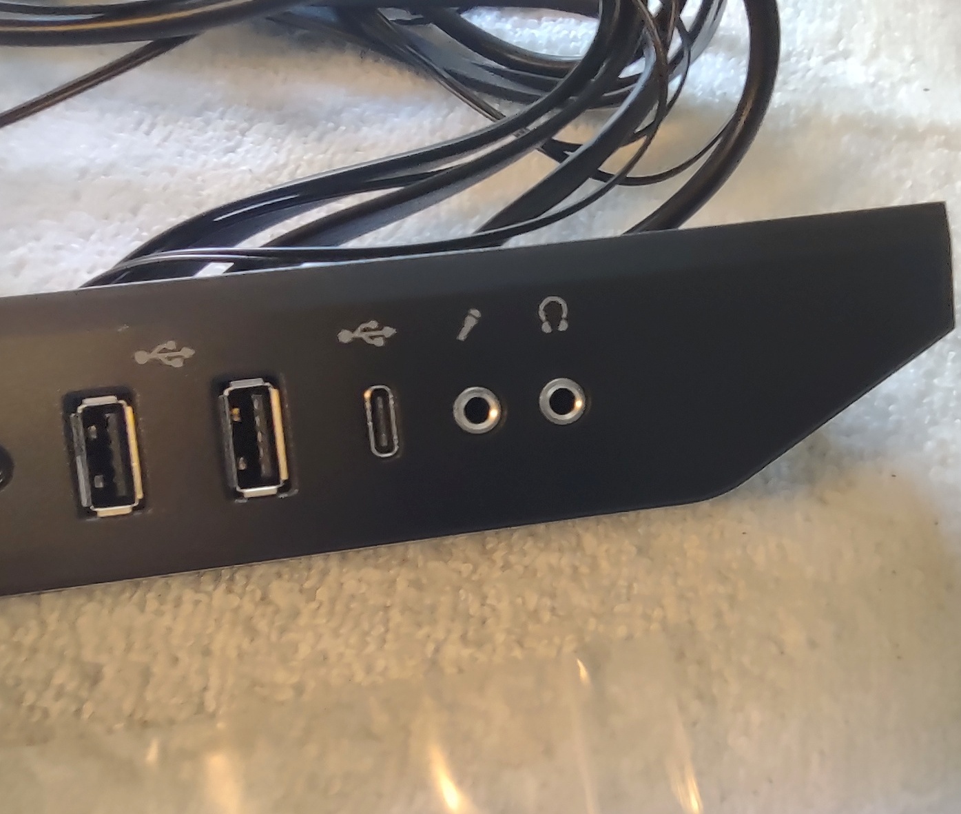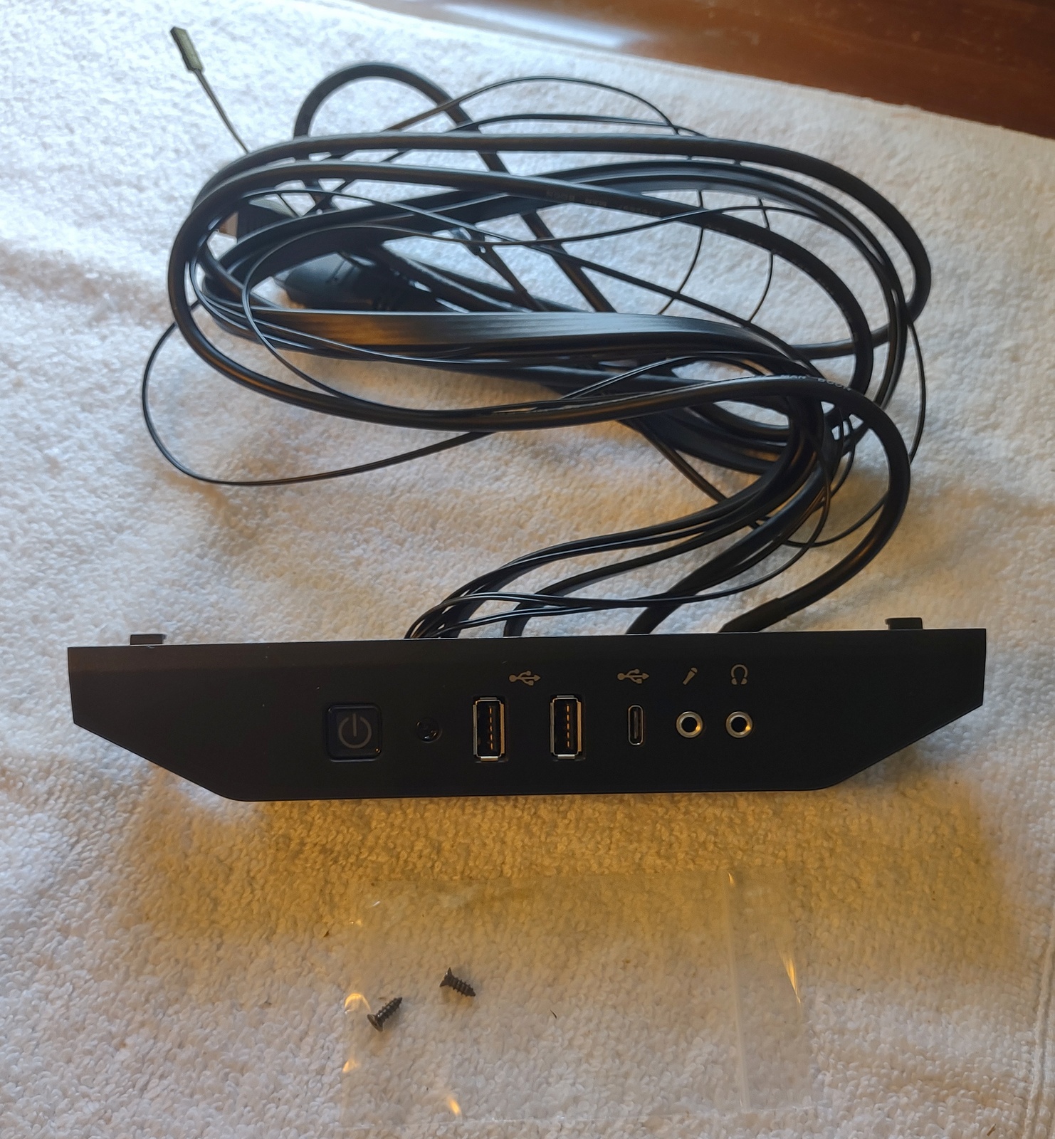 Up for sale is an I/O panel for use with Corsair Obsidian 500D cases. It may fit other cases, but we’re not for certain – you should check with Corsair for compatibility with your case BEFORE you purchase this one. It also may be useful in your own project or custom case. The longest cable is the HD audio connector and it is about 34″ long.