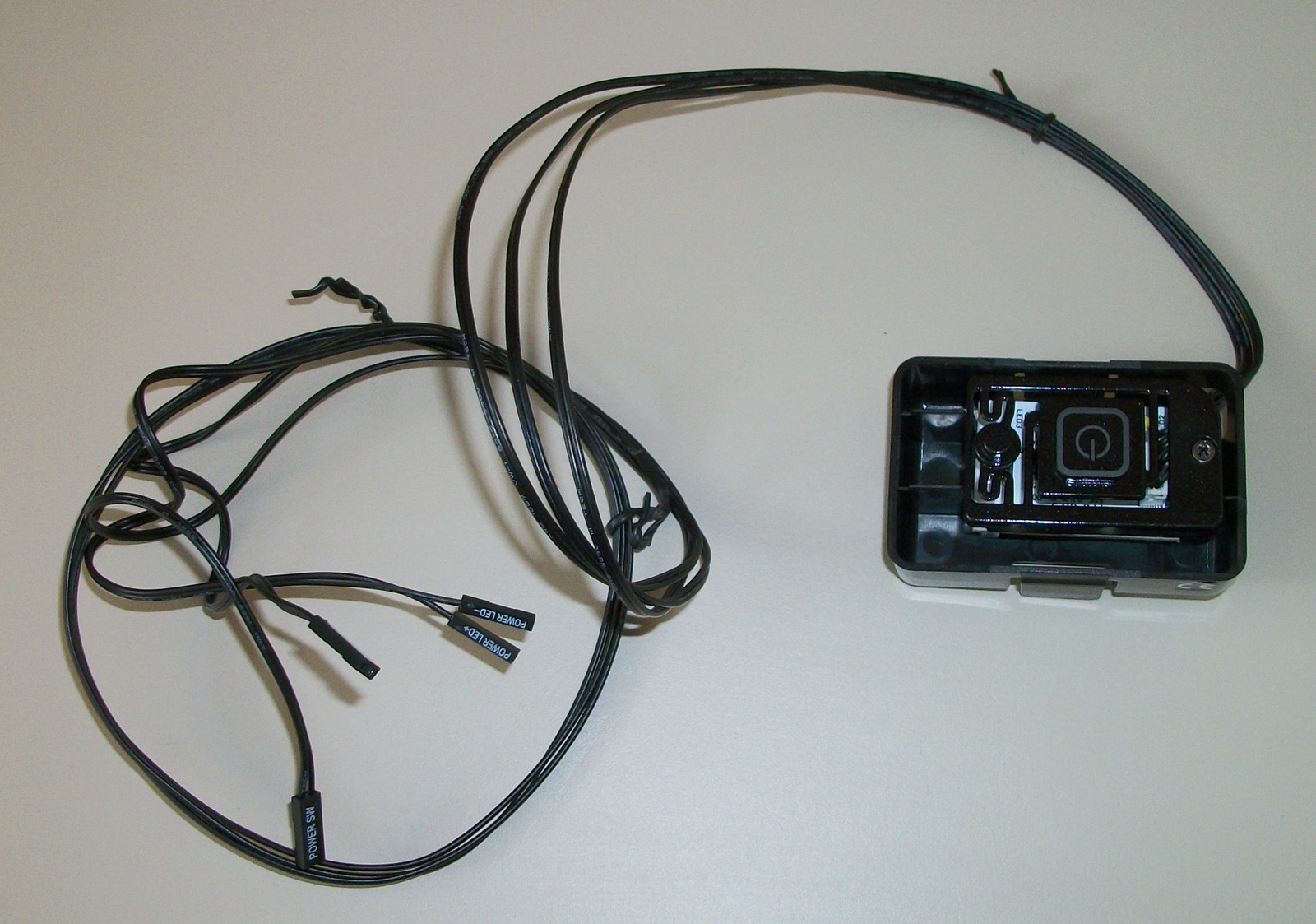 Up for sale is an ITX power / reset switch (with LED) for use with Corsair Obsidian 1000D cases. This is for controlling the power to the optional ITX motherboard which can be installed as a secondary system inside of the 1000D case. It may fit other cases, but we’re not for certain – you should check with Corsair for compatibility with your case BEFORE you purchase this one. It also may be useful in your own project or custom case. The cables are about 38″ long.