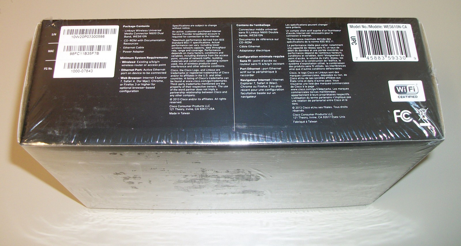 - Linksys Wireless Universal Media Connector N600 Dual Band, WES610N