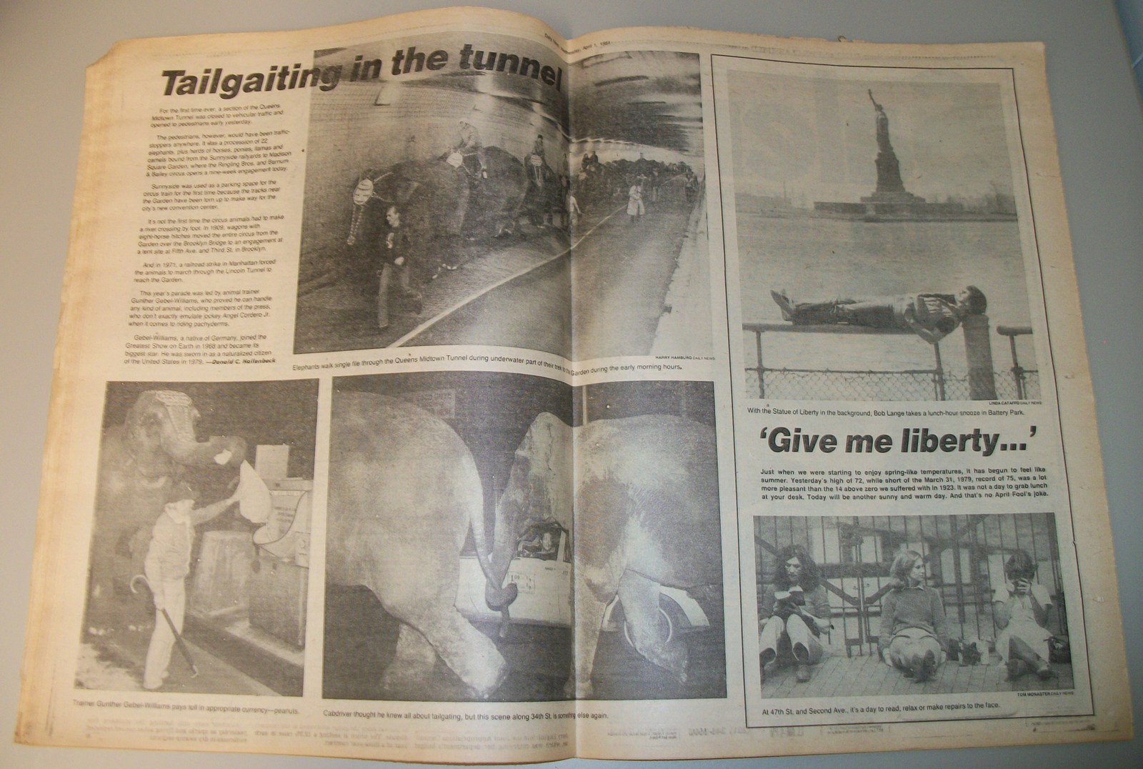 - The centerfold features pictures of elephants walking through the Queens Midtown Tunnel on their way to Madison Square Gardens for the Ringling Brothers, Barnum & Bailey Circus