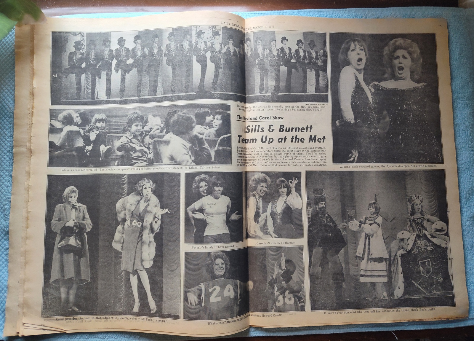 - The centerfold has several pictures of Carol Burnett and Beverley Sills performing at the Metropolitan Opera.