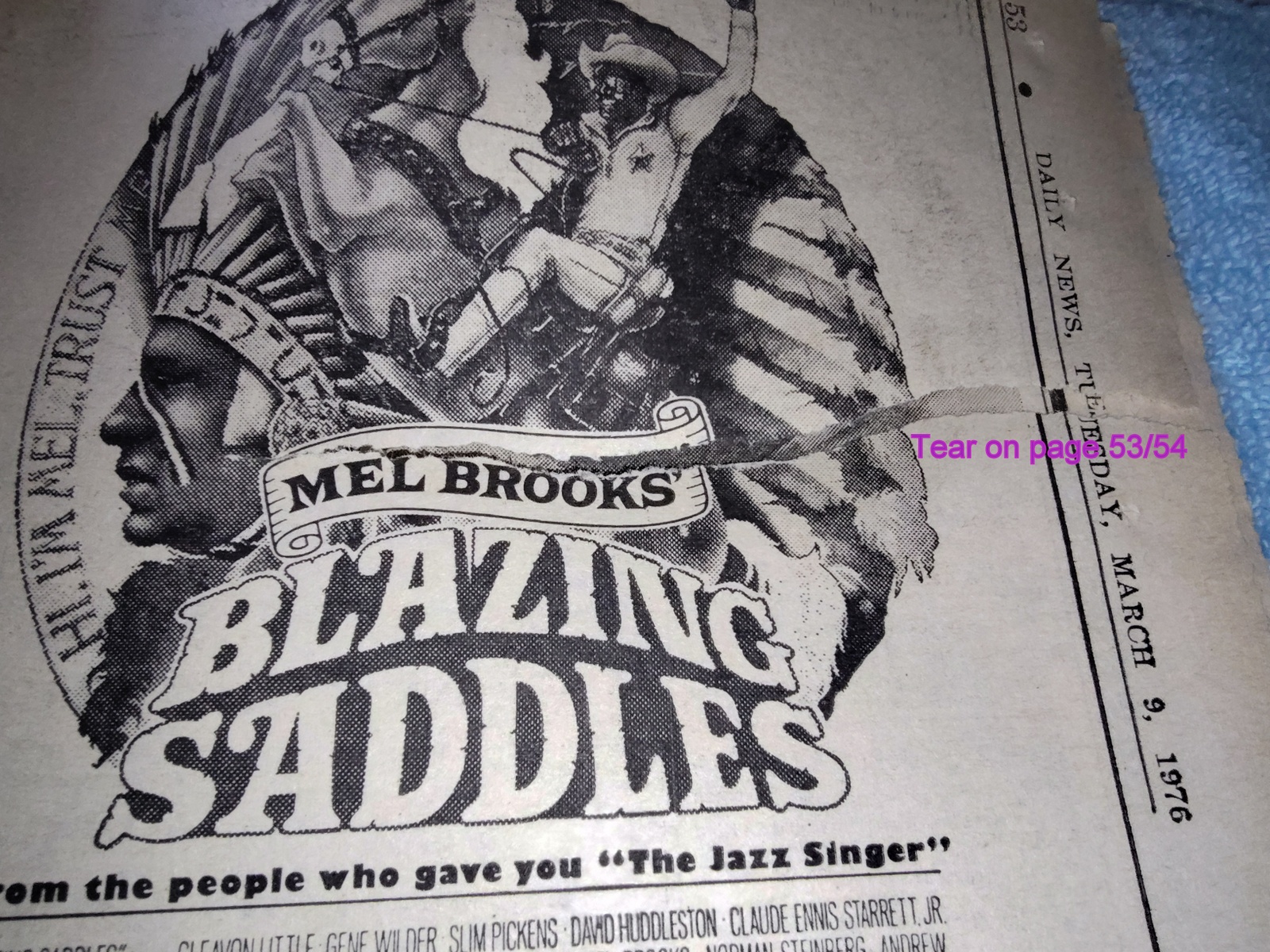 - There are movie ads for Robin and Marian, The Hindenburg, Blazing Saddles (has a tear through it), and more!