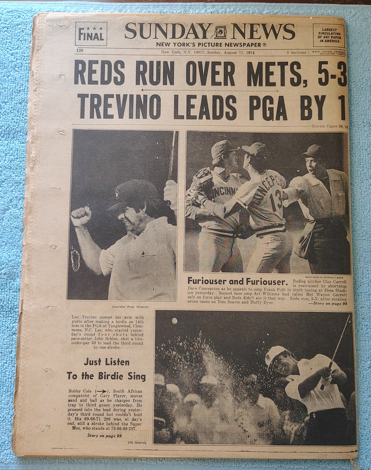 - The back page features pictures of Lee Trevino’s reaction to making a birdie putt, Bobby Cole making his exit from a sand trap, and Dave Concepcion restraining Clay Carroll after an umpire’s call that Carroll didn’t agree with.