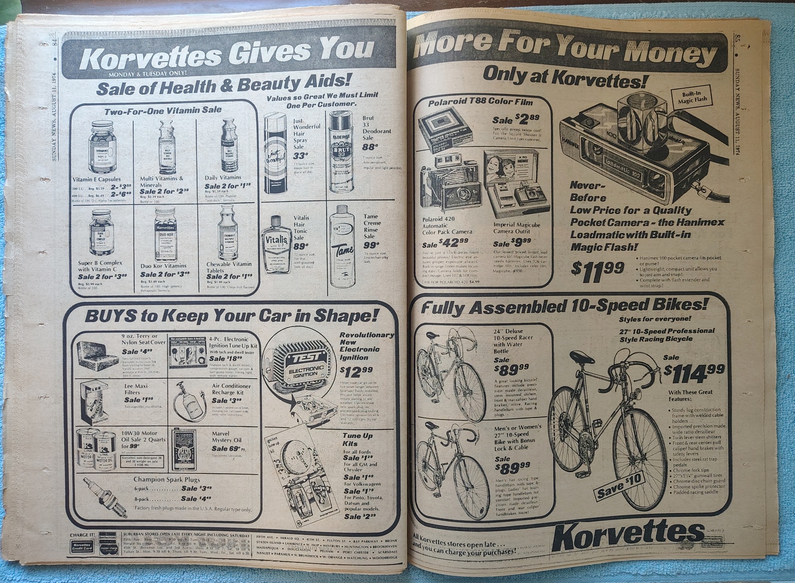 Good used condition for a newspaper from 1974! All 120 pages plus the 8-page special pullout on President Ford are included. Please note the wear/ tear / yellowing around the edges. LOOK AT THE PICTURES!