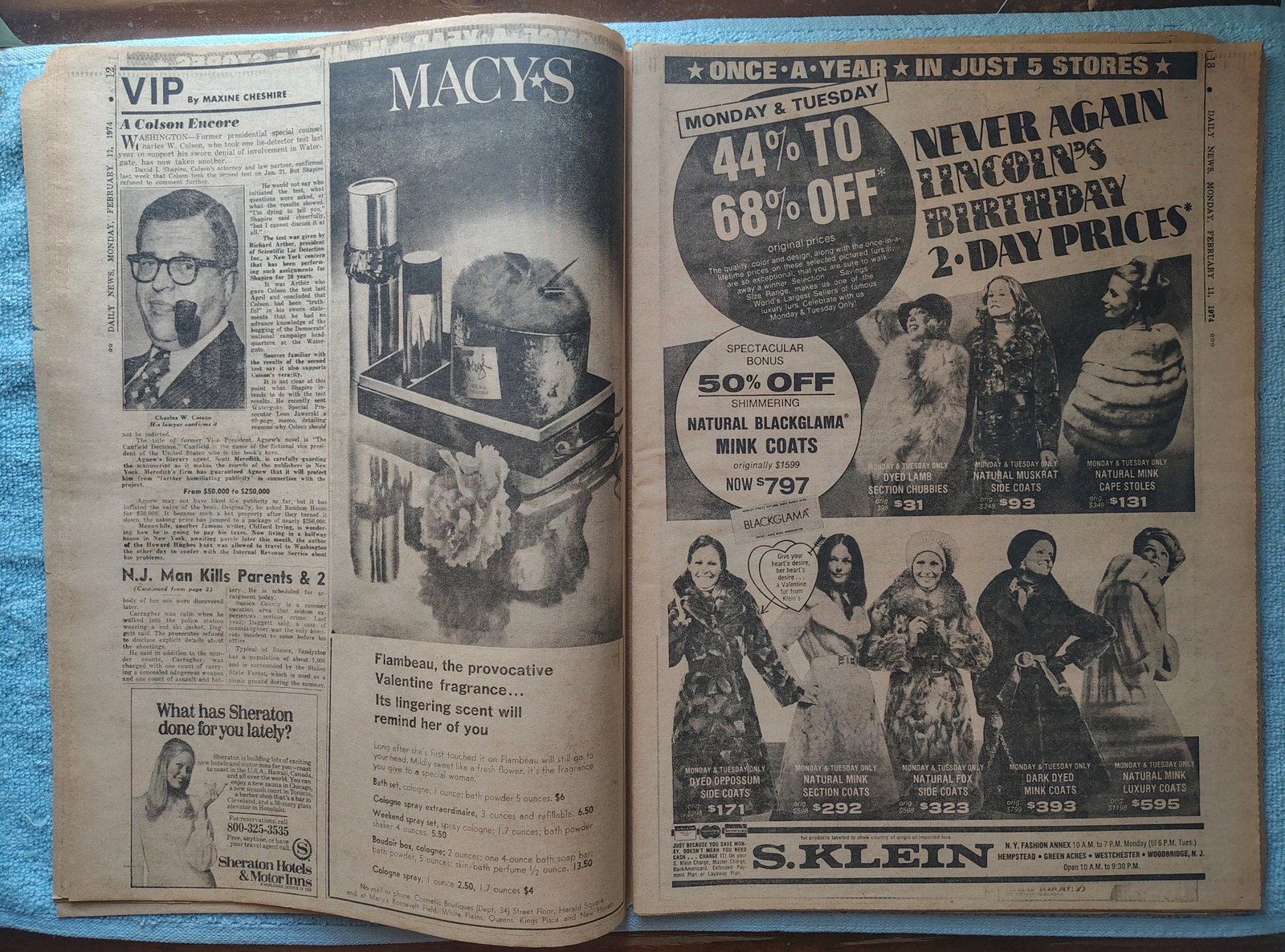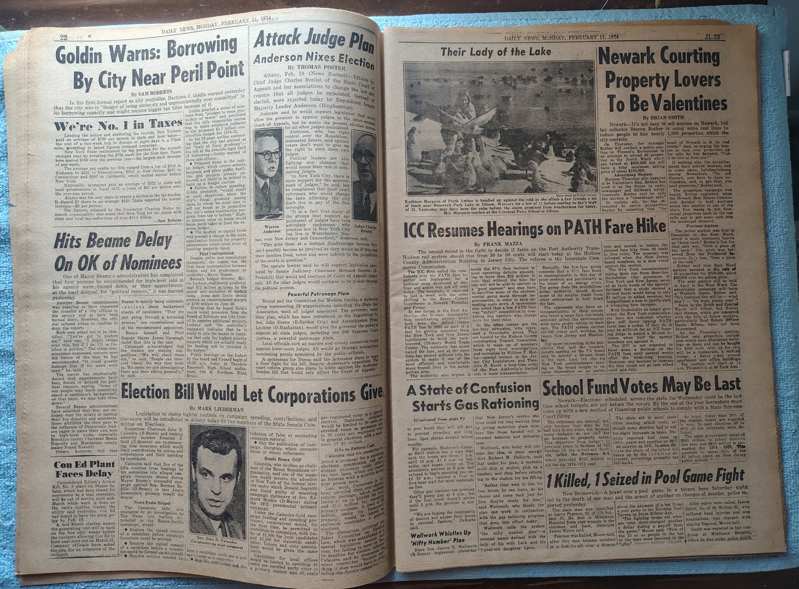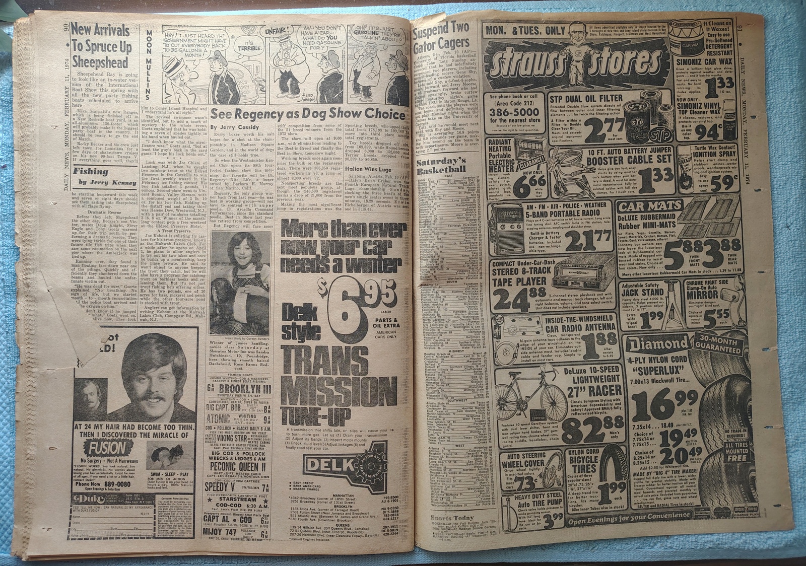 New York Daily News – Thursday, February 7, 1974. The headline is: ‘Gas Ration Plan Starts Tomorrow’ ‘N.J. Man Kills Parents & 2 Others’ The front page features a picture of Linda Frei of Springfield, VA with her dog, Indi Dancer on the day before the 98th Westminster Kennel Club show. What you see in the pictures is what you get.