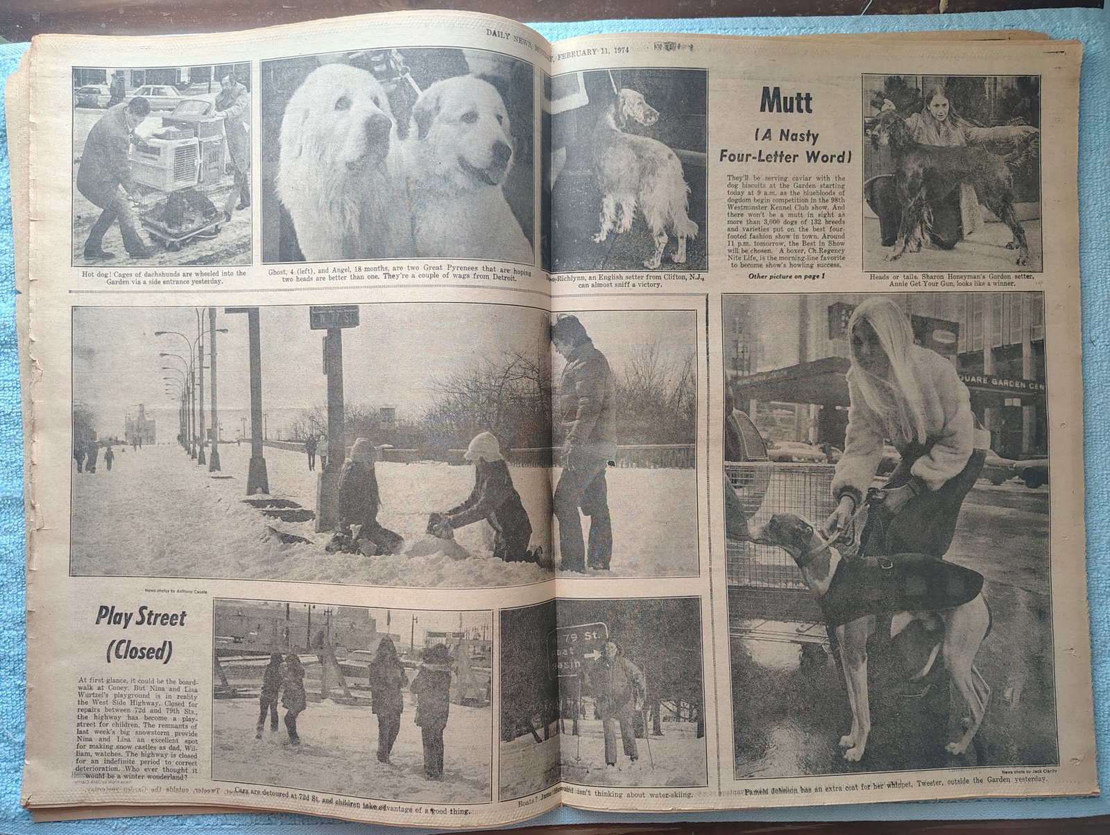 - The centerfold has a pictures of several dogs anticipating the 98th Westminster Dog show and some pictures of kids playing in the snow.